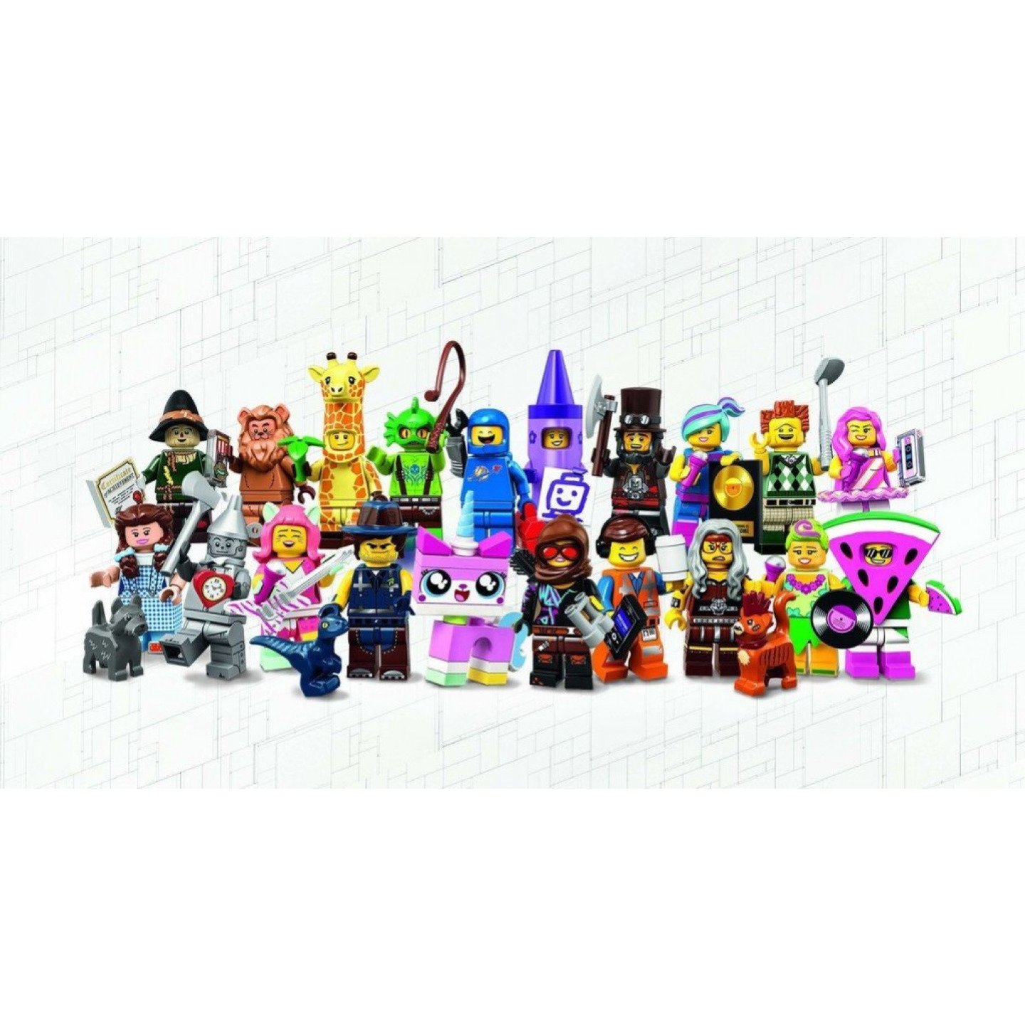 Tato nová sada, která vychází v únoru 2019, přináší exkluzivní, limitovanou edici postav se spoustou zajímavých doplňků a skvělých kostýmů. Užij si zbrusu nové dobrodružství inspirované filmem LEGO PŘÍBĚH 2 s postavami jako Emmet v novém, Bojovnice Lucy, Apokalypsák Benny, Žirafák, Voskovka, Sherry Šplhavá a Strašfield, Hula Lula, Melouňák, Lucy ze vzpomínek, Příšera z bažin, Sladká rapperka, Prezident Byznys na golfu, Apokalypsburg Abe, Kamarád Rex – milovník vest, Kitty Pop, Dorotka Galeová a Toto, Zbabělý lev, Strašák, Pan Konzerva a Unikitty! Každá sběratelská minifigurka je zabalená v „tajuplném“ uzavřeném sáčku společně s jedním nebo více doplňky, sběratelskou brožurkou a jedinečným podstavcem. Ke každé ze sběratelských LEGO® minifigurek z této série patří jeden nebo více doplňků, sběratelský letáček a jedinečný podstavec. Zahrnuje nové kostýmy a doplňky, které vyjdou v únoru 2019, včetně Emmetovy sluchátkové paruky, kapuce Lucy a golfové hole Prezidenta Byznyse, a navíc i apokalyptickou kočku, klobouk Abrahama Lincolna, klobouček/paruku Rexe, kostým melounu, kostým žirafy, vlasy Dorotky, čepici Pana Konzervy, klobouk Strašáka a hřívu Zbabělého lva. Kombinuj minifigurky z filmu LEGO® PŘÍBĚH 2 s ostatními LEGO stavebnicemi pro nekonečné herní možnosti. Bav se při vyměňování minifigurek se svými přáteli a získej kompletní sbírku.