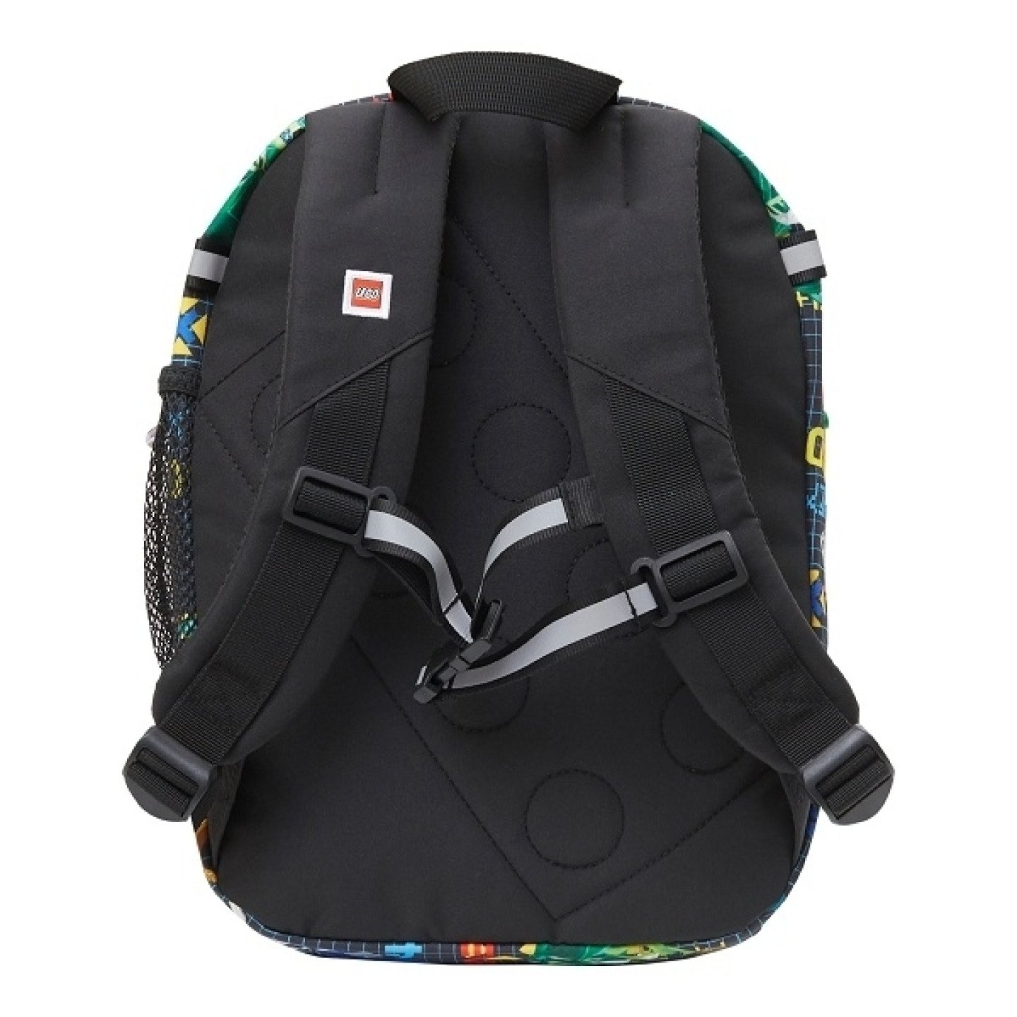 Perfektní LEGO batoh do školky nebo na výlety. Tento lehký batůžek má polstrované nastavitelné ramenní popruhy a nastavitelný hrudní popruh, všitou jmenovku či praktickou síťovanou boční kapsu na láhev s vodou nebo ovoce. Reflexní prvky jsou umístěny na všech stranách batohu. K zajištění co největší bezpečnosti je na přední straně batohu reflexní poutko na přichycení signálního světla. Popis batohu: - prostorná hlavní kapsa - nastavitelné, polstrované ramenní popruhy a nastavitelný hrudní popruh - boční síťovaná kapsa např. na láhev na pití o objemu 0,5 l - reflexní značky po všech stranách batohu - reflexní poutko k přichycení svítilny Rozměry: 32,5 x 24 x 13 cm Hmotnost: 200 g Objem: 10 l Materiál: 300D/600D Polyester