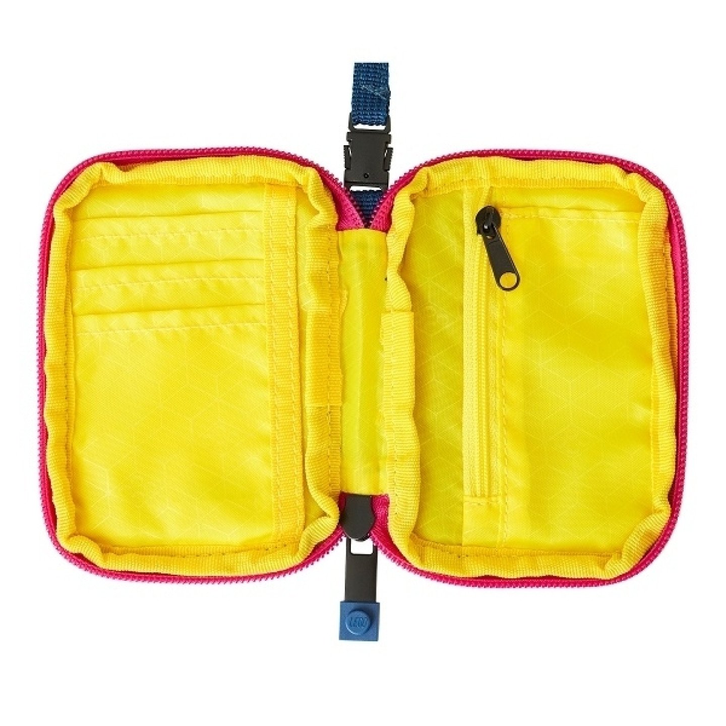 Peněženka s vnitřní a vnější kapsou na zip vhodná na mince či jiné drobné předmety. Prostor až pro 3 karty, vnější průhledná přihrádka ideální např. na uložení cestovního dokladu. Díky pásku na pověšení na krk s bezpečnostní pojistkou může být snadno přenášena a může se stát ideálním společníkem nejen dětí na výletech. Díky sjednocenému typu používaných přezek může být kapsička připnuta ke všem LEGO školním aktovkám a poutko použito například jako poutko na klíče. Popis kapsičky: - oblíbené LEGO motivy - pásek na pověšení na krk s bezpečnostní pojistkou - sjednocený systém přezek umožňující připojení k LEGO školním aktovkám - vnitřní a vnější kapsa na zip vhodná na mince či malé předměty - vnější průhledná kapsa na suchý zip Rozměry: 8 x 11,5 x 2 cm Hmotnost: 60 g Objem: 0,25 l Materiál: 300D/600D Polyester