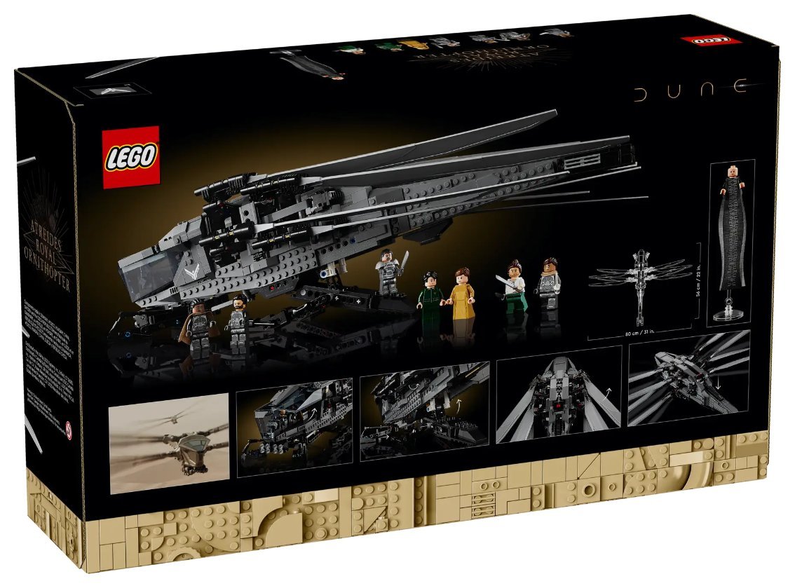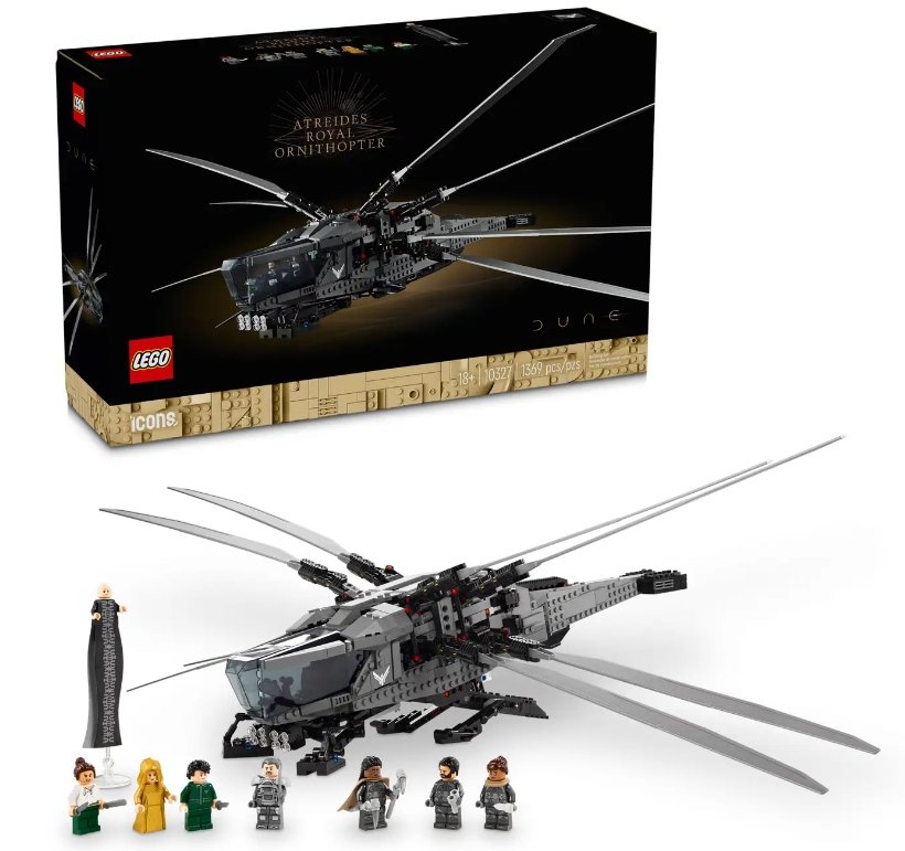 Hledáte dárek pro fanouška filmu Duna? Stavebnice LEGO® Icons (10327) Duna: Atreides Royal Ornithopher pro dospělé je to pravé! Darujte tuto sadu milovníkům kinematografie nebo si dopřejte chvilky kreativity s pečlivě propracovanou replikou legendární ornitoptéry rodu Atreidů. Součástí této prémiové stavebnice je replika ornitoptéry s vyklápěcími mávajícími křídly, zatahovacím podvozkem a otevíracím kokpitem. Nechybí ani 8 slavných postav z filmu: Paul Atreides, lady Jessica, Gurney Halleck, Chani, Leto Atreides, Liet Kynes, Duncan Idaho a baron Harkonnen ve své dlouhé róbě. Užijte si chvíle odpočinku s inspirativní řadou stavebnic LEGO pro dospělé. Aplikace LEGO Builder obsahuje digitální verzi návodu na stavění, který je součástí stavebnice. Stavebnice ze světa Duny pro dospělé – Sběratelská stavebnice LEGO® Icons Duna: Atreides Royal Ornithopher pro fanoušky filmu Duna z roku 2021 Co najdete v krabici – Vše, co potřebujete k sestavení repliky ornitoptéry Atreides Royal Ornithopher s vyklápěcími mávajícími křídly a zatahovacím podvozkem z kostek LEGO® a 8 minifigurek filmových postav Řada minifigurek – Nechybí Paul Atreides, lady Jessica, Gurney Halleck, Chani, Leto Atreides, Liet Kynes, Duncan Idaho a baron Harkonnen v dlouhé róbě Filmový kousek na výstavku – Tuto sběratelskou repliku z kostek LEGO® si můžete vystavit v režimu letu nebo přistávání. Součástí je také 8 minifigurek, se kterými vytvoříte velkolepé filmové scény Tip na dárek s filmovou tematikou – Darujte stavebnici LEGO® Icons Duna Atreides Royal Ornithopher fanouškům Duny a nadšencům do kinematografie Obsahuje digitální návod na stavění – Aplikace LEGO® Builder přináší digitální verzi návodu na stavění, který je součástí této stavebnice LEGO Icons Relaxační projekty LEGO® pro dospělé – Tato stavebnice LEGO Icons je součástí řady pokročilých modelů navržených pro dospělé Rozměry – Model se skládá z 1 369 dílků a s rozloženými křídly měří přes 23 cm na výšku, 57 cm na délku a 79 cm na šířku