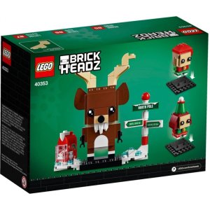 Nalaď se na Vánoční svátky s rozkošnou sadou LEGO® Brickheadz™ 40353 Sob, Elf a Elfka. Zábavný dárek pro LEGO fanoušky ke stavění a vystavení. Sob stojí v sestavitelném prostředí Severního pólu, ve kterém je rozcestník a Santova poštovní schránka se 2 dopisy. Součástí jsou sestavitelné figurky LEGO® Brickheadz™ soba, elfa a elfky na LEGO podstavcích. Na podstavec soba navazuje sestavitelné prostředí Severního pólu, ve kterém je rozcestník ukazující na LEGOLAND® v dánském Billundu a na americké město Brick, a navíc Santova schránka se 2 dopisy. Stavebnice představuje skvělý sváteční dárek pro všechny LEGO® fanoušky. Počet dílků: 278