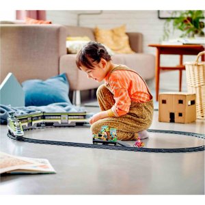 Stavebnice LEGO® City Expresní vláček (60337) obsahuje dálkově ovladatelnou lokomotivu s technologií LEGO Powered Up a funkčními světlomety, jídelní a osobní vůz, nástupiště, 24 dílů kolejí a 6 minifigurek, se kterými se mohou milovníci vláčků těšit na nespočet dobrodružství na železnici. Pro děti a milovníky vláčků Součástí této úžasné stavebnice pro děti od 7 let je i jednoduchý návod na stavění ke každému z modelů. Děti si mohou hrát samostatně nebo stavět společně s kamarády nebo členy rodiny. Tak či tak je čeká úžasný stavitelský a herní zážitek. Více než jen hračka pro děti Stavebnice LEGO City dětem otevírají bránu do světa akčního hraní prostřednictvím inspirativních postav a modelů realistických vozidel a propracovaných budov. Při hraní se děti zároveň zábavným způsobem učí a dozvídají o okolním světě. Stavebnice s modelem vláčku pro děti a milovníky železnice – LEGO® City Expresní vláček (60337) nabízí řadu tematických prvků a funkcí pro nekonečné hodiny zábavného hraní Co se ukrývá v krabici? – Vše potřebné k sestavení aerodynamické lokomotivy s funkčními světlomety, jídelního vozu, osobního vozu a nástupiště, a navíc 24 dílů kolejí a 6 minifigurek Tematické prvky a funkce – model vláčku a světlomety lze ovládat pomocí dálkové ovládání, které je součástí balení, nebo prostřednictvímchytrého zařízení s aplikací LEGO® Powered Up Dárek k jakékoliv příležitosti – touto stavebnicí LEGO® City lze obdarovat malé milovníky vláčků ve věku od 7 let, třeba k narozeninám nebo Vánocům Rozměry – expresní vláček z LEGO® City měří 10 cm na výšku, 86 cm na délku a 5 cm na šířku Doplňky pro minifigurky LEGO® – stavebnice obsahuje dílky přenosného počítače a telefonu, kolo, vozíček, kufřík, batoh a párek v rohlíku Zábavný stavitelský zážitek – stavebnice obsahuje jednoduchý návod na sestavení ke každému z modelů 24 dílů kolejí – stavebnice LEGO® City Expresní vláček obsahuje 16 zaoblených a 8 rovných dílů kolejí Záruka kvality – všechny kostky LEGO® splňují nekompromisní oborové standardy, jsou konzistentní, kompatibilní a zaručují zábavné hraní Bezpečnost na prvním místě – dílky LEGO® pouštíme na zem, zahříváme, drtíme, kroutíme a analyzujeme, abychom zajistili, že splňují přísné globální bezpečnostní normy