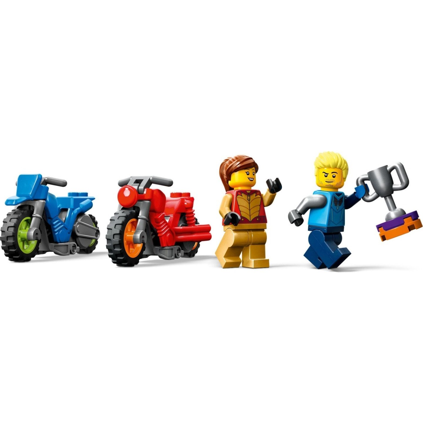 Děti od 6 let si zamilují plánování vzrušujících představení, her a soutěží s touto stavebnicí Kaskadérská výzva s rotujícími kruhy od LEGO® City (60360). Najdete v ní otáčivý dvojitý kaskadérský kruh, 2 rampy a 2 kaskadérské motorky se setrvačníkem. Stačí přidat 2 LEGO® City Stuntz jezdce na motorkách a zábava může začít! Ještě více zábavy při stavění s interaktivním digitálním návodem Součástí jsou obrázkové návody na stavění a digitální doprovodná aplikace LEGO Builder, která obsahuje intuitivní nástroje přibližování a otáčení, aby si děti mohly během stavění prohlížet modely ze všech úhlů. Zajímavé hračky pro děti Stavebnice LEGO City vkládají dětem do rukou akční vozidla, realistické budovy a zábavné postavy, které vybízejí k nekonečnému hraní. A pro ještě větší porci představení a soutěží je možné tuto sadu kombinovat s dalšími kaskadérskými stavebnicemi z řady LEGO City Stuntz. Kaskadérská akce pro děti od 6 let – Předvádějte se stavebnicí Kaskadérská výzva s rotujícími kruhy od LEGO® City (60360) akční kaskadérskou show a soutěže – sada je perfektní volbou pro samostatné i skupinové hraní Co vás čeká v krabici? – Obsahuje dvojitý kaskadérský kruh, 2 rampy, 2 kaskadérské motorky se setrvačníkem a 2 minifigurky jezdců Detaily a funkce – Hráči mohou roztočit dvojitý kaskadérský kruh a zvýšit tak náročnost Dárek k jakékoliv příležitosti – Stavebnice LEGO® CityStuntz skvěle poslouží jako dárek k narozeninám, Vánocům či jakékoliv jiné příležitosti pro milovníky kaskadérské akce od 6 let Rozměry – Kaskadérská výzva s rotujícími kruhy v zamčené poloze měří 20 cm na výšku, 26 cm na šířku a 39 cm do hloubky Součástí jsou doplňky pro minifigurky – V této sadě najdete helmu a pohár pro minifigurku Zábava s digitálním návodem na stavění – Díky aplikaci LEGO® Builder s návody na stavění pro chytré telefony a tablety si děti mohou modely přibližovat, otáčet a prohlížet ze všech úhlů Hračky, které podporují rozvoj – Stavebnice LEGO® City obsahují budovy, vozidla a postavy, které podněcují děti k nápaditému hraní a pomáhají jim s rozvojem kreativních dovedností a sebevědomí Záruka kvality – Už od roku 1958 splňují všechny kostky LEGO® nekompromisní oborové standardy, díky čemuž jsou konzistentní, kompatibilní a zaručují zábavné hraní Bezpečnost na prvním místě – Dílky LEGO® pouštíme na zem, zahříváme, drtíme, kroutíme a analyzujeme, abychom zajistili, že splňují přísné globální bezpečnostní normy