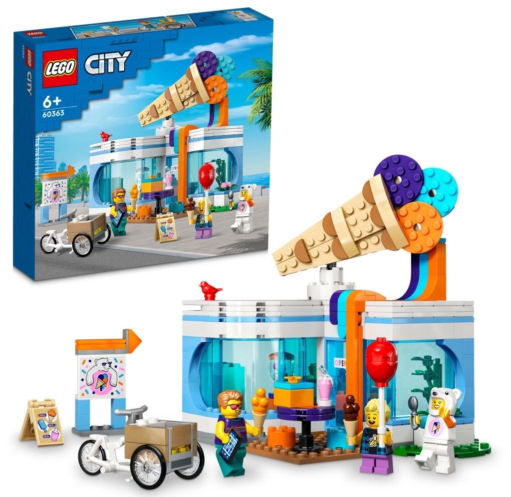 Stavebnice LEGO® City Obchod se zmrzlinou (60363) dětem od 6 let přinese letní atmosféru do hraní. Milovníci zmrzlináren a oslav si tuto stavebnici přímo zamilují – nechybí v ní zmrzlinový pult, mixér, lednice a venkovní posezení. Najdete zde také nákladní kolo a 3 minifigurky včetně prodavače v kostýmu ledního medvěda. Samozřejmostí je digitální návod na stavění Tato stavebnice obsahuje srozumitelný obrázkový návod na stavění a digitální návod v aplikaci LEGO Builder. Tento intuitivní pomocník při stavění umožní dětem prohlížet si modely ve 3D. Navíc mohou sledovat postup stavění a prozkoumávat a ukládat virtuální stavebnice. Objevujte svět prostřednictvím hry Stavebnice LEGO City nabízí dětem nespočet herních možností díky propracovaným a realistickým modelům budov, vozidel a inspirativním postavám, se kterými se každodenní aktivity promění v zábavu. Hračka s motivem obchodu se zmrzlinou – Se stavebnicí LEGO® City Obchod se zmrzlinou (60363) bude vaše město ještě zábavnější. Je skvělým dárkem pro fanoušky oslav, zmrzlináren a skvělých hraček od 6 let Co děti najdou v krabici? – Vše, co potřebují k sestavení Obchodu se zmrzlinou a nákladního kola, a navíc 3 minifigurky včetně prodavače v kostýmu ledního medvěda Hrajte si na oslavy – Připravte se na spoustu detailů pro nápadité hraní včetně zmrzlinového pultu, mixéru, lednice a venkovního posezení Zábavný dárek pro děti od 6 let – Darujte tuto stavebnici LEGO® k narozeninám či jakékoliv jiné příležitosti Rozměry – Model Obchod se zmrzlinou od LEGO® měří přes 17 cm na výšku, 16 cm na šířku a 12 cm do hloubky Doplňky pro minifigurky LEGO® – Mezi doplňky najdete mléčný koktejl, telefon, dárek a 2 zmrzlinové kornoutky Nechybí interaktivní návod – Objevte intuitivní aplikaci LEGO® Builder. Umožní dětem přibližovat a otáčet modely ve 3D, sledovat postup stavění a prozkoumávat a ukládat virtuální stavebnice Město nekonečných možností – Spojte tuto stavebnici s ostatními modely z řady LEGO® City a zažijte ještě více zábavných dobrodružství Hračky, na které se můžete spolehnout – Již od roku 1958 splňují všechny kostky LEGO® nekompromisní oborové standardy, díky čemuž jsou dílky konzistentní, kompatibilní a zaručují zábavné hraní Maximálně přísné testy – Kostky a dílky LEGO® pouštíme na zem, zahříváme, drtíme, kroutíme a analyzujeme, abychom zajistili, že splňují striktní globální bezpečnostní standardy