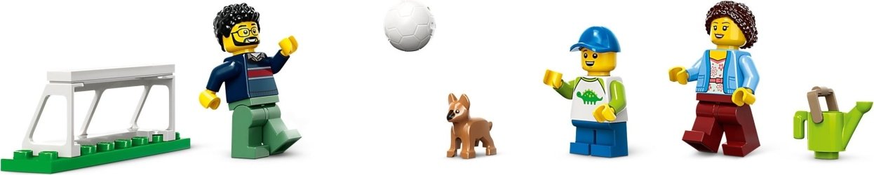 Součástí stavebnice LEGO® City Rodinný dům a elektromobil (60398) jsou kombinovatelné moduly pokojů, včetně zimní zahrady s jídelnou, kuchyně, 2pokoje a koupelna. Najdete v ní dokonce i model dobíjecí stanice pro elektromobil, solární panely a LEGO Křižovatku, pomocí níž můžete stavebnici spojovat s dalšími z řady LEGO City. Přidejte 3 minifigurky a figurku štěněte a můžete se pustit do hodin nápadité zábavy. Obsahuje interaktivní digitální návod na stavění Děti si užijí spoustu legrace přistavění podle obrázkového návodu nebo si mohou stáhnout aplikaci LEGO Builder a vychutnat si pohlcující stavitelský zážitek. Aplikace dětem umožňuje prohlížet si modely ve 3D během stavění. Navíc díky ní mohou sledovat svůj postup stavění, prozkoumávat a ukládat virtuální stavebnice. Učení hravou formou Stavebnice LEGO City nabízí dětem nespočet herních možností díky propracovaným a realistickým modelům budov, vozidel a inspirativním postavám, se kterými se každodenní aktivity promění v zábavu. Stavebnice domu a auta – LEGO® City Rodinný dům a elektromobil (60398) je stavebnice s kombinovatelnými moduly pokojů se spoustou detailů podporujících nápadité hraní Co se ukrývá v krabici? – Vše, co děti potřebují pro sestavení modulárního domu a auta, dále 3 minifigurky, figurka psa a LEGO® Křižovatka umožňující propojení s ostatními stavebnicemi z řady LEGO City Navrženo pro kreativní hraní – Děti mohou moduly vyměňovat a upravit tak dům podle sebe, navíc lze otevřít střechu pro snadný přístup k propracovanému interiéru LEGO® dárek pro děti od 6 let – Skvěle poslouží jako zábavný narozeninový, vánoční či jakýkoli jiný dárek Rozměry – Dům měří přes 17 cm na výšku, 19 cm na šířku a 16 cm do hloubky. Elektromobil pak má 4 cm na výšku, 10 cm na délku a 4 cm na šířku Doplňky pro minifigurky LEGO® – Součástí je konev na zalévání, fotbalová branka, fotbalový míč a 2 pánve Nechybí interaktivní návod – Objevte intuitivní aplikaci LEGO® Builder. Umožní dětem přibližovat a otáčet modely ve 3D, sledovat postup stavění a prozkoumávat a ukládat virtuální stavebnice Ještě více neomezeného hraní – Spojte tuto stavebnici s ostatními modely z řady LEGO® City a zažijte ještě více zábavných dobrodružství Hračky, na které se můžete spolehnout – Již od roku 1958 splňují všechny kostky LEGO® nekompromisní oborové standardy, díky čemuž jsou dílky konzistentní, kompatibilní a zaručují zábavné hraní Maximálně přísné testy – Kostky a dílky LEGO® pouštíme na zem, zahříváme, drtíme, kroutíme a analyzujeme, abychom zajistili, že splňují striktní globální bezpečnostní standardy