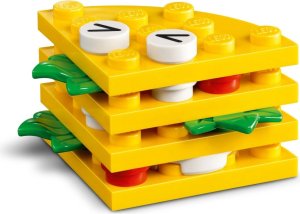 Všestranná stavebnice LEGO® Classic (11039) Kreativní jídlo je ideální pro děti od 4 let. S touto nápaditou hračkou si děti postaví řadu zábavných postaviček z jídla a užijí si celé hodiny hraní. Díky nekonečným možnostem zábavného stavění, přestavování a objevování tato stavebnice LEGO pro začínající stavitele pomáhá rozvíjet sebevědomí, soustředění a schopnost řešit problémy. Děti si pomocí pestrobarevných a poutavých kostek a speciálních dílků, jako jsou oči, ústa a řada dekorativních prvků, postaví 4 roztomilé hračky ze stavebnice Kreativní jídlo: Cupcake, zmrzlinu, avokádo a taco. Kreativní zábava bude pokračovat, když děti kostky promíchají a přestaví modely na dort s posypem, bubble tea, hrušku a panini. Až děti získají větší sebevědomí při stavění, mohou podle intuitivního návodu na stavění měnit jejich výrazy, tvary nebo barvy a poskládat si nové kamarády: Zelenou zmrzlinu, krabici džusu, kousek melounu, čokoládovou tyčinku a mega sendvič. Stavebnice pro děti – LEGO® Classic Kreativní jídlo je nápaditá stavebnice navržená speciálně pro kluky a holky od 4 let Různé kostky a zábavné dílky – Stavebnice obsahuje barevné kostky různých tvarů a speciální dílky, jako jsou oči, ústa a dekorativní prvky Nekonečná kreativita – Děti postaví cupcake, zmrzlinu, avokádo a taco, přestaví je na dort s posypem, bubble tea, hrušku a panini a pak se pustí do tvoření podle vlastní představivosti Podrobný návod – Součástí balení je jednoduchý a intuitivní návod, který dětem pomůže rozvíjet kreativní stavitelské dovednosti Dárek pro děti od 4 let – Tato všestranná stavebnice s rychle sestavitelnými modely představuje kreativní dárek pro děti, které mají rády jídlo a zábavné postavičky Ještě více zábavy – Prohlédněte si celou řadu hraček LEGO® Classic (prodávají se samostatně) a užijte si ještě větší porci kreativní zábavy Rozvoj dovedností pomocí kostek – Hračky LEGO® Classic přináší spoustu nápadů a inspirace a umožňují rodičům sdílet stavitelskou zábavu a vývojové milníky se svými dětmi Stavebnice se 150 dílky – Model cupcaku měří přes 6 cm na výšku, 4 cm na šířku a 1 cm do hloubky, ale děti si modely mohou přizpůsobit tak, aby byly větší nebo menší