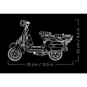 Ponořte se do obohacujícího stavění se stylovou stavebnicí LEGO® pro dospělé s modelem Vespa 125. Model vychází z klasického skútru Vespa Piaggio z 60. let a pyšní se pastelově modrým lakováním – netradiční a ojedinělou barvou pro modely LEGO, která zaručeně ohromí všechny fanoušky. Model vznikl ku příležitosti oslav 75. narozenin ve spolupráci se zástupci značky Vespa a představuje pohlcující stavitelský zážitek zejména pro dospělé stavitele. Nádherné zpracování a autentické prvky Stejně jako u původní předlohy je i u sestavitelného modelu skútru Vespa přední kolo uchyceno pouze z jedné strany. Dále má model sedačku pro 2 pasažéry, odnímatelnou kapotu, pod kterou se ukrývá motor sestavený z kostek, i funkční stojan a řízení. Nesmí chybět logo Vespa, klasická italská poznávací značka ve stylu 60. let, náhradní pneumatika, helma ani košík v zádní části s kyticí květin. Vítejte ve svém světě Stavějte kreativně. Stavějte soustředěně. Stavějte autentické modely z exkluzivní kolekce jedinečných vozidel vytvořené speciálně pro dospělé. Postavte si vlastní model LEGO® Vespa 125 (10298) – propracovanou výstavní verzi klasické italské ikony pro dospělé Inspirováno originálem – model skútru Vespa z kostek se pyšní jednostranným uchycením předního kola, sedačkou pro 2 pasažéry, odnímatelným krytem, pod kterým se ukrývá motor z kostek, a funkčním řízením Extra detaily – důmyslnost zpracování podtrhuje logo Vespa, klasická italská poznávací značka ve stylu 60. let, náhradní pneumatika a košík s kyticí květin Vytvořeno pro milovníky značky Vespa – model vznikl ku příležitosti oslav 75. narozenin ve spolupráci designérů LEGO® se zástupci značky Vespa a zaručeně ohromí všechny nadšené vyznavače italské kultury Netradiční barevné provedení – model zdobí pastelově modrá, jedna z původních originálních barev skútru Vespa a zároveň ojedinělá barva pro kostky LEGO® Oslavujte La Dolce Vita – díky praktickému stojanu si můžete model vystavit kdekoli doma nebo v kanceláři a vzdát tak hold značce Vespa  Rozměry – výstavní model měří přes 22 cm na výšku, 12 cm na délku a 35 cm na šířku Projekt pro dospělé – tato stavebnice LEGO® je součástí řady modelů pro dospělé a představuje skvělý dárek pro fanoušky skútrů značky Vespa Kvalitní materiály – kostky LEGO® se vyrábějí z vysoce kvalitních materiálů. Jsou konzistentní, kompatibilní a umožňují snadné skládání a rozebírání – a to již od roku 1958 Záruka bezpečnosti – dílky LEGO® kladou bezpečnost a kvalitu na první místo. Proto procházejí přísnými testy, takže si můžete být jistí, že model skútru Vespa je bezpečný a dostatečně robustní