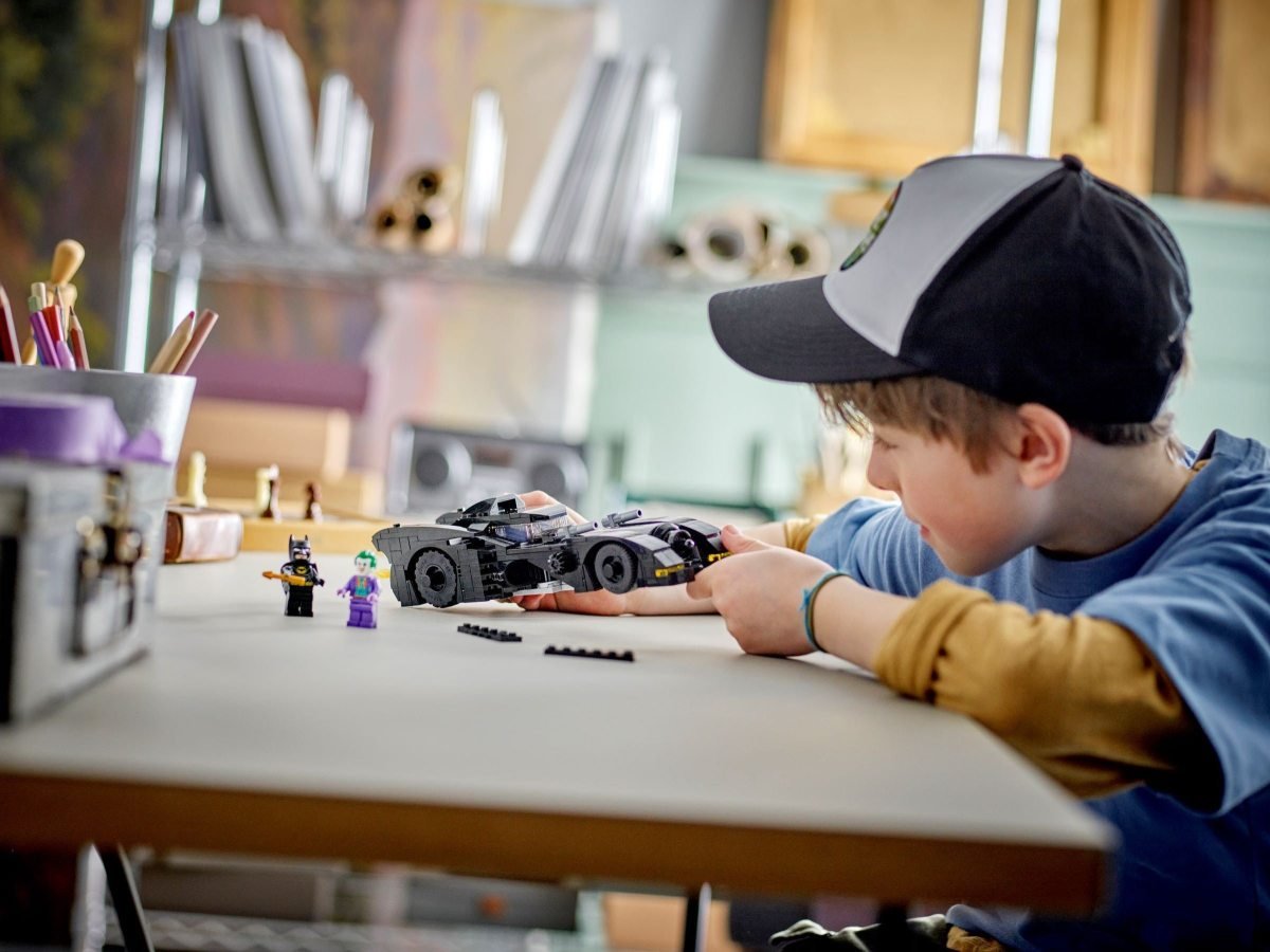 Stavebnice LEGO® DC (76224) Batman™ vs. Joker™: Honička v Batmobilu vkládá dětem od 8 let do rukou superhrdinské akční hraní s kultovním 1989 Batmobilem. Dobrodružství Batmana na kolech Stavebnice s Batmobilem přivádí k životu veškeré drama a napětí z klasického filmu z roku 1989. Zvedací střecha umožňuje přístup do kokpitu vozu, kde je na sedadle řidiče místo pro minifigurku. Když děti otočí ovladačem na straně auta, zvednou se 2 integrované blastery. Při pohybu Batmobilu se otáčí prvek plamene připojený k výfuku a v otevíracím kufru je místo na přiložený Batarang™, hrot harpuny a pouta. Součástí jsou 2 minifigurky, Batman a Joker, a navíc doplňky včetně helmy a pláště. Pro ještě více digitální zábavy je zde zábavná a intuitivní aplikace LEGO Builder, kde mohou stavitelé přibližovat a otáčet modely ve 3D a sledovat postup. Kultovní 1989 Batmobil – Stavebnice LEGO® DC (76224) Batman™ vs. Joker™: Honička v Batmobilu oživuje drama a napětí z klasického filmu z roku 1989 Minifigurky a další – Součástí stavebnice jsou kromě modelu Batmobilu ve stylu filmu z roku 1989 také minifigurky Batmana a Jokera, ale i doplňky jako je Batarang™, hrot harpuny a pouta Autentická akce – Vozidlo má přístupný kokpit pro minifigurku Batmana, ovládání vysunující 2 blastery, otevírací kufr a výfuk s plamenem Dárek pro děti – Darujte tuto stavebnici 1989 Batmobil k narozeninám, pod stromeček nebo k jakékoliv jiné příležitosti malým superhrdinům od 8 let Výstavní kus – Batmobil měří přes 5 cm na výšku, 28 cm na délku a 9 cm na šířku a lze jej snadno kombinovat s ostatními stavebnicemi řady LEGO® DC Batman™ Intuitivní průvodce stavěním – Děti si mohou stáhnout aplikaci LEGO® Builder a vychutnat si pohlcující stavitelský zážitek s digitálními funkcemi přibližování a otáčení modelů ve 3D a možností ukládání stavebnic a zobrazení postupu ve stavění Ještě větší zábava se superhrdiny – Rozsáhlá řada stavebnic LEGO® DC Batman™ přináší dětem neomezené tvůrčí možnosti stavění, hraní a vystavování Záruka kvality – Dílky LEGO® splňují striktní oborové standardy kvality, což znamená, že jsou konzistentní a kompatibilní a snadno z nich lze stavět Bezpečnost zaručena – Kostky a dílky LEGO® pouštíme na zem, drtíme, kroutíme, zahříváme a analyzujeme, abychom zajistili, že splňují přísné globální bezpečnostní standardy