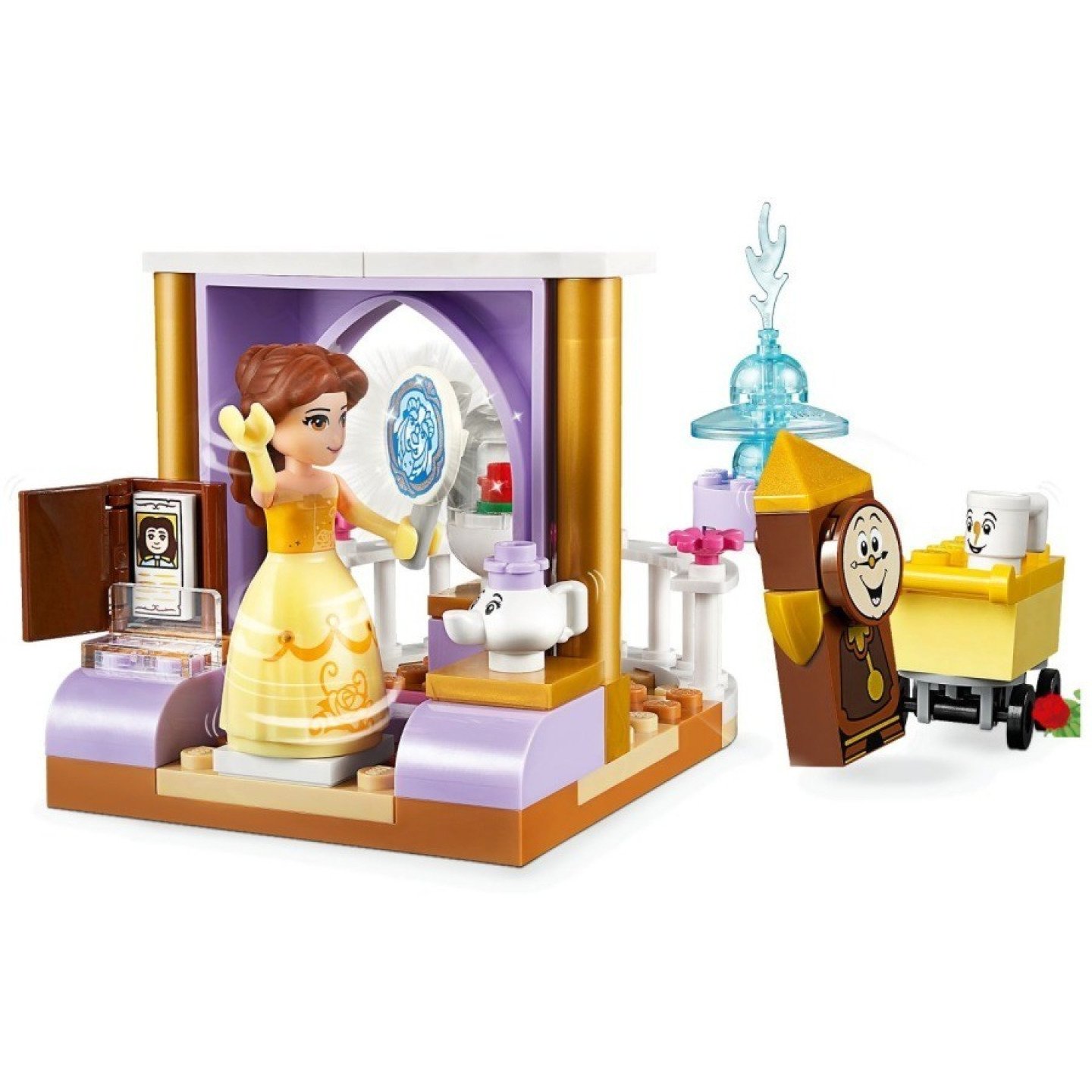 Naplánuj čajový dýchánek a užij si čas na pohádku s Disney princeznou Bellou a jejími přáteli v této zábavné sadě LEGO® Juniors 10762 Bellin čas na pohádku! Tato sada obsahuje hrad princezny s prvkem pro rychlý začátek stavění, balkónem s kouzelnou růží za sklem, věžemi a otáčecím stolkem. Najdeš v ní také desku parku s otáčecím piknikovým stolem, sestavitelnou vodní fontánou a vozíkem, a k tomu navíc knihu pohádek, z níž může Belle předčítat. Tato sada LEGO návod na stavění i ke hře, který pomůže budovat sebevědomí malých dětí od 4 let. Součástí sady je minipanenka, hrnek a čajová konvička a sestavitelná figurka pana Cogswortha. Obsahuje minifigurku Disney princezny Belly, skládací figurku Cogswortha, a k tomu navíc Chipa a paní Pottsovou. Hrad princezny obsahuje prvek zdi pro rychlý začátek stavění, otáčecí stůl, okno s průhlednou dekorací v podobě růží a hradní balkón. Součástí je také park s otáčecím piknikovým stolem a sestavitelná vodní fontána a vozík. Mezi doplňky najdeš knihu pohádek s otevírací obálkou, zrcátko a croissant, a k tomu navíc sestavitelný dort a kouzelnou růži vystavenou za sklem. Roztoč princeznu Bellu na otáčecím hradním stole, zatímco si čte v knize pohádek o princovi. Nalož věci na vozík a vydej se do parku na čajový dýchánek. Postav Chipa, paní Pottsovou a Cogswortha na otáčecí piknikový stůl a užij si spoustu zábavy. Součástí sad LEGO® Juniors jsou snadno sestavitelné modely se základnou pro rychlý začátek stavění, a také jednoduchý návod, aby se děti mohly rovnou pustit do stavění a hraní. LEGO® Juniors konstrukční hračky jsou kompatibilní se všemi LEGO stavebními sadami pro tvůrčí stavění. Princeznin hrad měří přes 13 cm na výšku, 6 cm na šířku a 9 cm do hloubky. Základna s piknikovým stolem měří přes 4 cm na šířku a 6 cm do hloubky.
