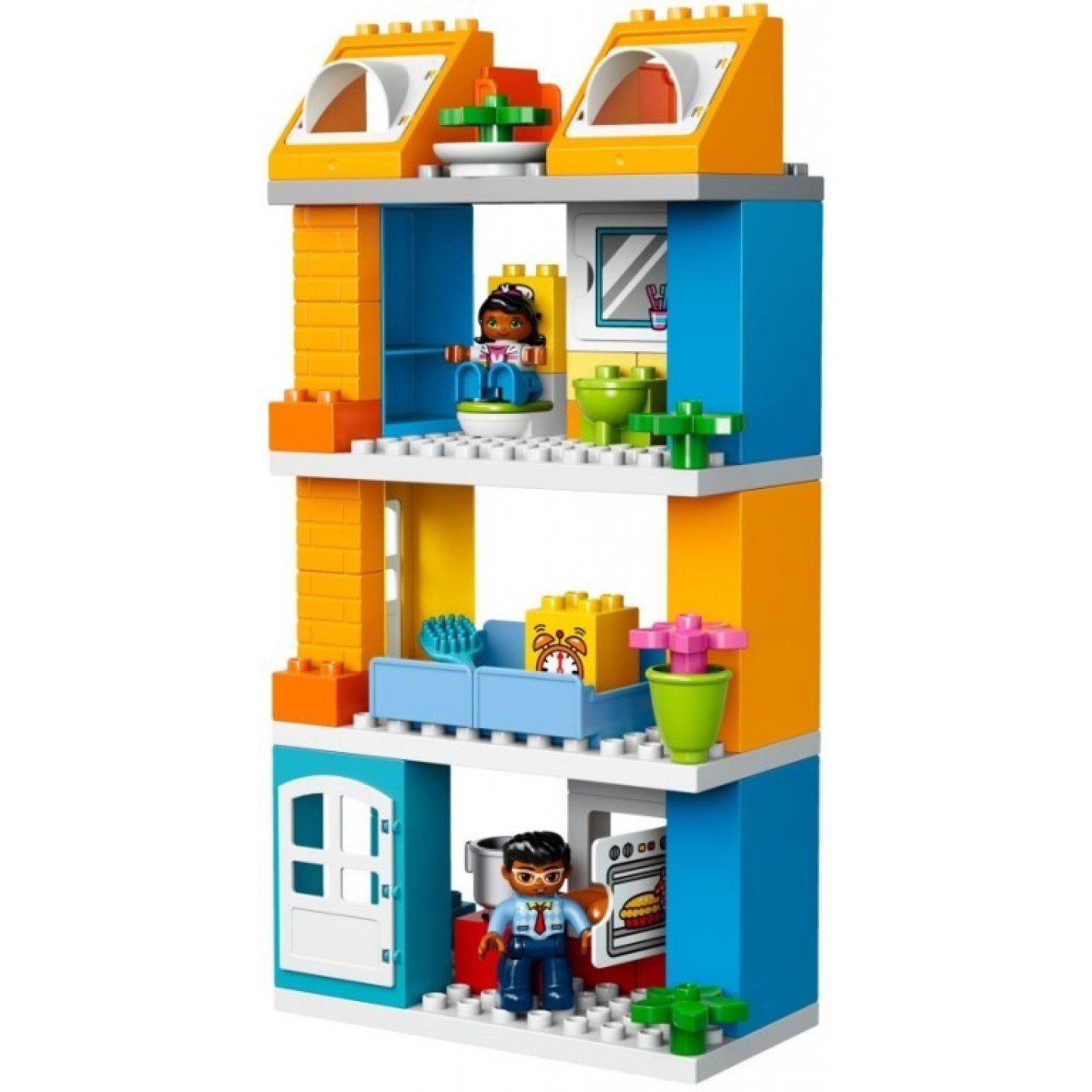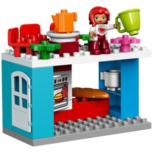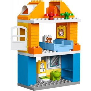 Přehrávej si scénáře ze skutečného života v LEGO® DUPLO® Moje město: snadno pochopitelném a rozpoznatelném světě s moderními DUPLO figurkami. V tomto snadno postavitelném domě najdete nekonečné množství možností ke hraní - malé děti se mohou bavit cvičením různých aktivit a postupů od ranního vstávání, přípravy a jedení jídla, až k umývání auta. Sledujte, jak se jejich dovednosti týkající se situačních scénářů rozvíjí při přehrávání každodenních situací se třemi DUPLO figurkami. Součástí jsou tři figurky LEGO® DUPLO®: maminka, tatínek a dítě. Obsahuje modulární dům se třemi patry, s kuchyní s otevírací troubou, koupelnou se záchodem, umyvadlem a otevírací skříňkou se zrcadlem, ložnicí s postelemi, dětským pokojem s otevíracími okny, střešní terasou s jídelnou, vnitřními poličkami, otevíracími dveřmi a autem. Obsahuje kostky zdobené obrázky jako je zrcadlo, toaletní papír, budík, trouba a plyšový medvídek, které slouží jako začátky příběhů. Mezi doplňky najdešhrnec na vaření, talíř, bagety, konvici, hrnek, kartáč a květiny. Používejte moderní postavy, doplňky a zdobené kostky, s jejichž pomocí Vaše malé dítě snáze pochopí denní rutinu a každodenní situace, které si s ním můžete přehrávat. Tento zábavný a snadno postavitelný Rodinný dům rozvíjí rané stavitelské dovednosti a poskytuje nekonečné množství možností ke hře. Modulární budova znamená, že tento model může být přestavěn a předělán mnoha různými způsoby. Malé děti si zamilují, kdyžsi budou moci hrát na to, že tatínkovi pomáhají umývat auto nebo péct bagety v troubě. LEGO® DUPLO® stavebnice jsou speciálně navržené tak, aby byly vhodné a bezpečné pro malé ručičky. Tato sada nabízí zážitek z hraní a stavění vhodný pro děti od 2 do 5 let. Rodinný dům měří přes 28 cm na výšku, 38 cm na šířku a 9 cm do hloubky. Auto měří přes 4 cm na výšku, 9 cm na délku a 6 cm na šířku. Máme hned několik výrobků z řady Moje město, které můžete sbírat a vysvětlovat s jejich pomocí svému dítěti každodenní momenty v pro něj snadněji pochopitelném světě LEGO® DUPLO®.