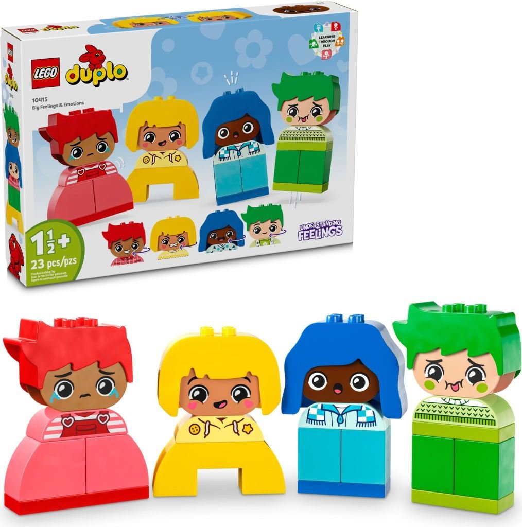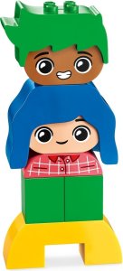 Kognitivní vzdělávací stavebnice LEGO® DUPLO® (10415) Moje první pocity a emoce dětem pomáhá porozumět vlastním pocitům. Součástí jsou 4 různorodé postavy, z nichž má každá dva výrazy, a sada tak dětem umožňuje ukázat, jak se právě cítí. Zvídavé děti vědí, že lidé mají nejrůznější podoby, a s touto inkluzivní hračkou ještě lépe porozumí tomu, že se každý člověk může lišit od těch ostatních. Batolata při stavění postaviček z kostek prohloubí svou kreativitu a jemné motorické dovednosti. Poskládají figurky s vlasy a oblečením stejné barvy a procvičí si poznávání barev – nebo se pustí do stavění figurek v kontrastních odstínech. V této stavebnici LEGO DUPLO najdete řadu kostek zajímavých tvarů, které přímo lákají ke zkoumání malými prstíky,a batolata se s nimi mohou těšit na nekonečné tvoření. Rozvíjení emočních dovedností dětí – Součástí stavebnice LEGO® DUPLO® Moje první pocity a emoce jsou 4 postavičky s rozmanitými výrazy, které dětem od 18 měsíců pomohou porozumět různým náladám Zábavné přestavování – Batolata si užijí spoustu legrace se skládací stavebnicí s 23 kostkami, včetně 8 výrazů a 4 paruk, kterou lze přizpůsobovat dle libosti a hraní s ní zaručeně neomrzí Kreativní vzdělávací hračky – Batolata skládají kostky, vybírají stejnobarevné nebo kontrastní paruky a výrazy, které prozrazují, jak se jejich postavičky z kostek LEGO® DUPLO® cítí Rozvíjení jemných motorických schopností – Zvídavé děti svými prstíky prozkoumají barevné paruky figurek Skvělý tip na dárek pro malé děti – Tato hračka představuje skvělý dárek k narozeninám, Vánocům nebo jakékoli jiné příležitosti Stvořeno pro malé stavitele – Kostky a dílky z této stavebnice LEGO® DUPLO® s tematikou přátelství pouštíme na zem, drtíme, kroutíme, zahříváme a analyzujeme, abychom zajistili, že splňují přísné normy týkající se bezpečnosti dětí Rozvíjí sociální dovednosti a empatii – Stavebnice LEGO® DUPLO® pro malé děti nabízejí inkluzivní postavy a známé prvky, které vedou děti k učení hrou Rozměry – Stavebnice se skládá z 23 dílků a součástí jsou figurky, které měří přes 12 cm na výšku