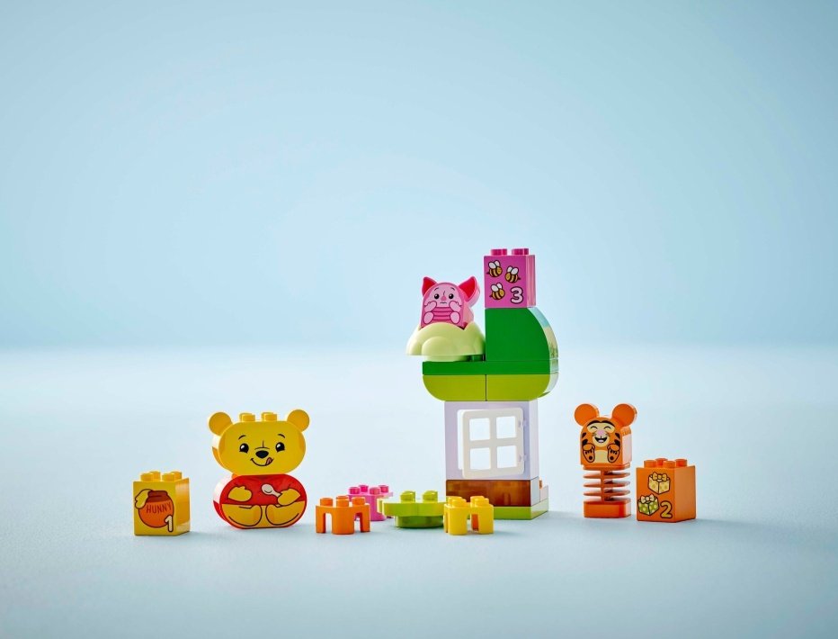 Rodiče a malé děti si užijí kreativní hraní a učení hrou se stavebnicí LEGO® DUPLO® Disney (10457) Narozeninová oslava Medvídka Pú. Tato barevná vzdělávací stavebnice pomáhá malým stavitelům od 18 měsíců procvičovat základní dovednosti a zároveň si užívat nápadité hraní. Malé děti si zahrají na oslavu se 3 figurkami LEGO DUPLO: Medvídkem Pú, Tygrem a Prasátkem. Každá postava má oboustranný obličej s různými výrazy, takže děti si můžou vymýšlet nekonečné kreativní hry a nové příběhy. Tato zábavná také pomáhá rozvíjet sociální a dovednosti a empatii nejmenších dětí, které prozkoumají různé emoce během oslavy, od radosti z rozbalování dárků až po nepříjemný pocit po snědení spousty sladkostí! S touto stavebnicí si malé děti procvičí třídění barev při párování narozeninových dárků se zvířátky. Dárky jsou navíc očíslované, takže batolata se můžou dokonce začít učit počítat. Zábavná vzdělávací stavebnice – Batolata si se stavebnicí LEGO® DUPLO® ǀ Disney Narozeninová oslava Medvídka Pú užijí oslavu, hraní a procvičování základních dovedností. 3 sestavitelné modely zvířátek LEGO® DUPLO® – Součástí jsou figurky milovaných postav LEGO DUPLO Disney: Medvídek Pú, Tygr a Prasátko, dárky a domek na stromě, který podněcuje zábavné a kreativní hraní Stavebnice na rozvoj sociálních a emočních dovedností – Každá postavička má zábavný oboustranný obličej, který dětem, kteréještě nemluví, umožní prozkoumat různé emoce během oslavy Učení hrou – Batolata zdokonalí svou dovednost párování sestavitelných narozeninových dárků a židlí s barvami postaviček Tip na dárek pro malé fanoušky filmů od studia Disney – Skvělý dárek pro malé děti, které si rády hrají na různé emoce se sestavitelnými hračkami Digitální návod na stavění – Aplikace LEGO® Builder obsahuje digitální verzi návodu na stavění, jenž je součástí této hračky pro malé děti, kterou jsme pečlivě testovali, abychom zaručili bezpečný herní zážitek Vzdělávací hračka pro malé děti – Dobrodružné stavebnice LEGO® DUPLO® pomáhají rozvíjet sociální a emoční dovednosti dětí prostřednictvím zábavného kreativního hraní Rozměry – Tato stavebnice se skládá z 22dílků a dům na stromě měří přes 15 cm na výšku, 7 cm na šířku a 11 cm do hloubky