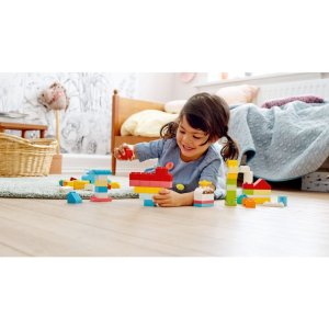 Nakopněte dětskou kreativitu s touto začátečnickou stavebnicí Batolata se již nemohou dočkat, až popadnou kostky uzpůsobené pro malé ručky a začnou stavět. Jednoduchý návod na stavění zajistí, že nápadité hraní začne bez zbytečného zdržování. Postavte dům, zmrzlinu, velrybu, květinu, helikoptéru nebo kachničku – každý z těchto snadno sestavitelných modelů vám poskytne spoustu podnětů k povídání a hraní nápaditých příběhů. Jakmile děti začnou kostky kombinovat při vytváření vlastních modelů, tvořivá zábava nebude mít konce. Osvojte si důležité dovednosti s první stavebnicí LEGO DUPLO Stavebnice LEGO DUPLO malým stavitelům vkládají do rukou neomezené možnosti hraní a sebevyjadřování. Díky rozpoznatelným prostředím, známým postavám a kostkám dělaným na míru pro malé ručky inspirují předškoláky, aby se s bezmezným nadšením pustili do hravého učení. Váš malý stavitel si tuto pestrobarevnou sadu kostek LEGO® DUPLO® doslova zamiluje. S 15 zábavnými modely a nespočtem možností stavebnice dětem vkládá do rukou svět neomezených příležitostí. Součástí je 80 pestrobarevných kostek uzpůsobených pro batolata, ze kterých snadno sestavíte 15 modelů, včetně domu, zmrzliny, velryby, květiny a dalších. Při hraní a stavění si děti osvojí dovednosti, které jim vydrží po celý život. Sdílejte zábavu a učte se spolu se svým malým stavitelem. Začněte s 15 jednoduchými modely. Zeptejte se jich, který mají nejraději (bude to zmrzlina?). Pak jim pomozte stavět vlastní nápadité výtvory! Roztomilé, barevné modely z kostek, které jsou bezpečné a se kterými se snadno manipuluje, představují ideální vzdělávací hračku skvělou jako vánoční, narozeninový nebo jakýkoli jiný dárek pro holčičky a chlapečky ve věku od 18 měsíců. Každý z 15 začátečnických modelů představuje roztomilý předmět, který děti znají z každodenního života. Spojte tyto dílky sostatními stavebnicemi LEGO® DUPLO® a užijte si ještě více kreativních možností. Nejsou zapotřebí žádné baterie. Zábavu pohání dětská představivost, a proto nikdy neskončí! Kreativní hračky bez baterií podpoří děti v rozvoji jemných motorických dovedností a schopnosti řešit problémy. Otevřete krabici a pusťte se ihned do hraní. Jednoduché návody na stavění rodičům a batolatům ukáží, jak snadno sestavit jednotlivé modely. A jakmile děti začnou stavět, zábava nebude brát konce! Stavebnice LEGO® DUPLO® představují skvělé dárky pro batolata. Povzbuzují otevřenou hru a podporují vývoj pomocí scénářů z reálného života, známých postav, roztomilých zvířátek a kreativní zábavy. Výukové stavebnice pro předškoláky LEGO® DUPLO® splňují ty nejvyšší oborové standardy, takže si můžete být jisti, že je pro malé ručky snadné kostky uchopit, umístit a rozpojit – a je tomu tak již od roku 1969! U nás ve společnosti LEGO Group kostky a dílky LEGO® DUPLO pouštíme, mačkáme, kroutíme, zahříváme, ohýbáme, škrábeme a natahujeme, abychom zajistili, že každá stavebnice DUPLO pro malé stavitele splňuje ty nejvyšší standardy týkající se celkové bezpečnosti a kvality. Plnohodnotná náhrada setu 10848 Moje první kostky.