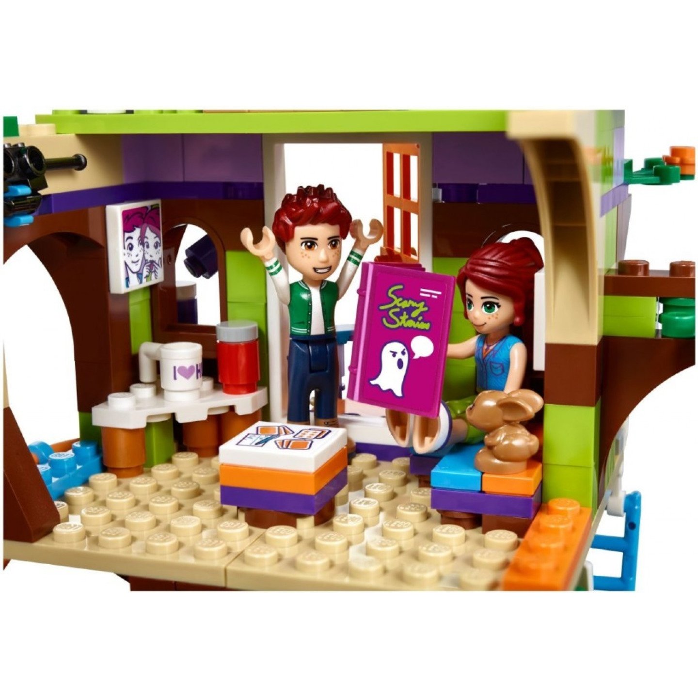 Pomoz Mii přeměnit stromový domeček jejího brášky na parádní místečko v parku pro všechny její kamarádky. Zabal Danielovy věci do skříňky na střeše, než odjede na univerzitu a s Miou pověste obrázky jejích přátel a rodiny. Vyšplhej se po síti do druhého patra a pomocí vodní pistole odežeň všechny nechtěné návštěvníky! Pak se sešoupni dolů po lanovce a navštiv Miinu králičí kamarádku Mimi v jejím domečku a dones jí mrkev. Obsahuje mini-panenky Miu a Daniela, králíčka Mimi a ptačí figurku Cinnamon. Zahrnuje dům na stromě s přístupem po žebříku nebo sítí na lezení, podkroví s otevírací střechou a úložnou skříňkou, kmen stromu se skříňkou a králičí domeček. Mezi doplňky najdeš skateboard, vodní pistoli, baterku, knížku plnou tajemných příběhů, umělecké destičky, pizzu, hrnek „I love Heartlake City“, deskovou hru, mapu parku městečka Heartlake, bumerang, destičku s milostným dopisem, míč, ptačí hnízdo, vejce a mrkev. Sklouzni dolů po lanovce a po síti vylez zpět do domečku. Připrav super-strašidelnou noc pro Miiny kamarádky s tajemnými příběhy při světle baterky, s deskovými hrami a pizzou, a nakonec objevte Danielovu skříňku na půdě! Projeď skateboard v parku městečka Heartlake, nebo si užij legraci venku se sportovním vybavením této super stavebnice. Pomoz milovnici zvířat Mii a postarejte se o jejího králíčka v domečku a o roztomilého ptáčka, který hnízdí na stromě. Vhodné pro děti od 6 do 12 let. Dům měří přes 16 cm na výšku, 17 cm na šířku a 16 cm do hloubky. Králičí domeček měří přes 3 cm na výšku, 4 cm na šířku a 3 cm do hloubky.