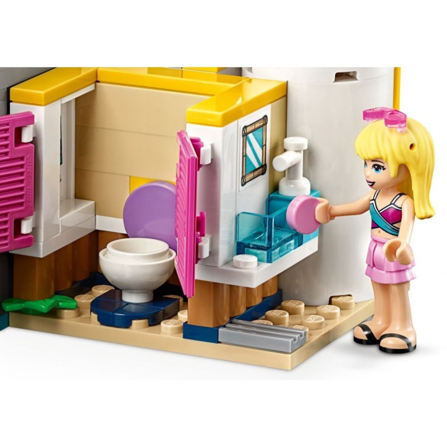 Dej se do pohody se sadou LEGO® Friends 41374 Andrea a party u bazénu. Tato bazénová party kamarádek LEGO Friends podnítí představivost a kreativitu vašeho dítěte. Vaše malá stavitelka si může hrát na Andreu a na to, že pořádá LEGO party u bazénu, pouští hity nebo zpívá od pultu DJ. Nebo si může hrát na Stephanie, která se baví a užívá si vše, co bazén nabízí. Stavebnice party u bazénu obsahuje akvárium, skluzavku, vodopád, stroj na dělání vln a džusový bar. Pro případ, že už je čas vylézt z vody, je tady také převlékárna a toaleta. Dopřejte všem LEGO stavitelům úžasný stavitelský zážitek s návody na stavění PLUS, které jsou dostupné v aplikaci LEGO Life pro smartphony a tablety. Snadno použitelný, intuitivní návod na stavění jim umožní za pochodu přibližovat, otáčet a vizualizovat jejich výtvory pomocí speciálního režimu. Návod na stavění PLUS je také vhodný pro malé stavitele, jelikož je provede stavitelským procesem a umožní jim dosáhnout větší nezávislosti a zažít úspěchy. Tato stavebnice pro holky a kluky obsahuje 2 minipanenky. Součástí jsou 2 minipanenky: Andrea a Stephanie. Obsahuje sestavitelný bazén se skluzavkou, vodopád, odpružený odrazový můstek, vířivku, rotující pult DJ, sprchy se skříňkami, WC a akvárium. Džusový bar zahrnuje 2 barové židle a lze ho postavit zvlášť, nebo ho můžeš postavit jako bazénový bar. Stroj na dělání vln obsahuje sadu reproduktorů, surfovací prkno a ovladač, který ukrývá funkci dělání vln. Mezi doplňky najdeš mísu s ovocem, mixér, banány, mrkev, brýle s třešněmi, surfovací prkno, záznamy rekordů, střílející vodní pistole, motýlek, hřeben na vlasy, ploutve a rybu. Děti si zamilují zpívat s Andreou všem přátelům. Otočením ovladače rozvlníš vodu, ať můžou holky surfovat. Zábavné doplňky, jako je pistole, která „střílí“ vodu, zaručí ještě více dobrodružství a legraci při hraní. Na party u bazénu si děti budou moci přehrávat společenské situace. Ideální vánoční dárek nebo dárek na prázdniny pro kreativní děti. Aplikace LEGO® Life ti poskytne přístup k intuitivnímu návodu na stavění PLUS. Pomůže se stavěním i menším stavitelům, jelikož nabízí přehledné funkce přibližování, otáčení a speciálního režimu, které jim umožní vizualizovat si jejich výtvory za pochodu. Sady LEGO® Friends podporují kreativní hraní a stavění je s nimi nápadité a zábavné. Tato stavebnice je součástí světa LEGO® Friends, který je plný každodenních hrdinů a vzrušujících reálných scénářů. Ideální dárek pro děti. LEGO® sada s bazénem měří přes 15 cm na výšku, 29 cm na šířku a 20 cm do hloubky. Stroj na dělání vln měří přes 7 cm na výšku, 4 cm na šířku a 5 cm do hloubky.