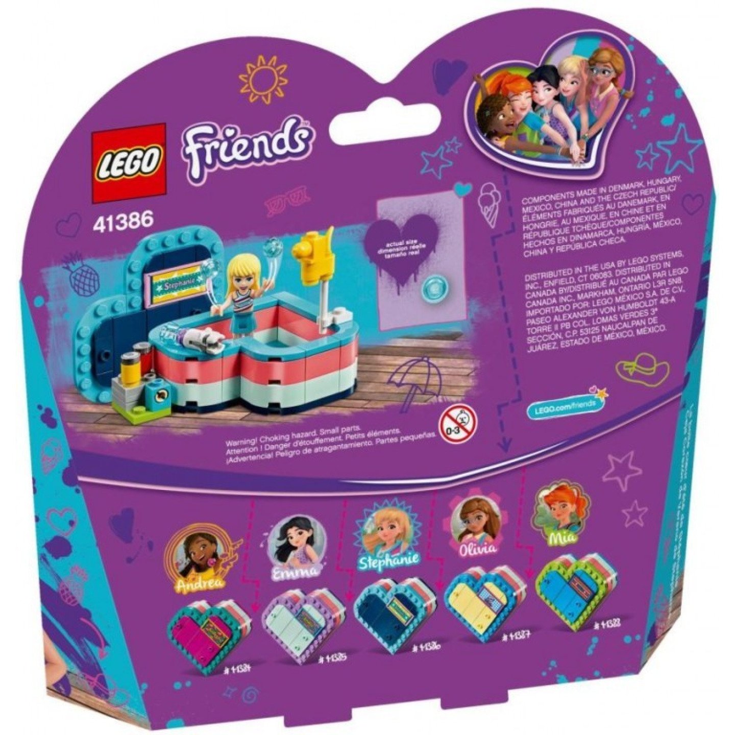 Vaše malá stavitelka může připevnit Stephanie na víko krabičky, aby při střílení mířila přesně. Spodek vnitřní části krabičky je z modrých destiček, které připomínají moře. Stephanie se tak po dni na kolotočích může jít osvěžit do vody. Pak můžete vše sbalit do krabičky, uzavřít víko a vzít zábavu s sebou na cesty. Stavebnice obsahuje snadný návod na stavění a také minipanenku Stephanie. Nákup na legenio.cz, to je rychlé odeslání za skvělé ceny! Součástí je minipanenka Stephanie. Obsahuje sestavitelnou krabičku v barvách Stephanie s ozdobnou jmenovkou, stánek s funkcí shození plechovek a vodní pistoli s funkcí střílení. LEGO® Friends doplňky v této sadě zahrnují balón ve tvaru psa. Děti mohou vše schovat do LEGO® krabičky ve tvaru srdce a vzít si tak zábavu na cesty! Sady LEGO® Friends podporují kreativní hraní a stavění je s nimi nápadité a zábavné. Děti mohou postavit tuto LEGO® srdcovou krabičku na 41384 letní krabičku od Andrei, 41385 letní krabičku od Emmy, 41387 letní krabičku od Olivie a 41388 letní krabičku od Mii a užívat si společnost všech kamarádek z městečka Heartlake. Tato stavebnice je součástí světa LEGO® Friends, který je plný každodenních hrdinů a vzrušujících reálných scénářů. Srdcová krabička měří přes 3 cm na výšku, 7 cm na šířku a 7 cm do hloubky.