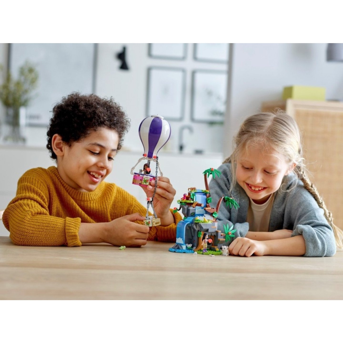 Součástí stavebnice jsou 2 tygří mláďata a také malá želvička. LEGO Friends jsou hrdým sponzorem objevitelů a vědců z řad National Geographic Explorers. V této sadě najdete spoustu doplňků, které inspirují k přehrávání napínavých scénářů o záchraně zvířat. Děti mohou pozorovat tygří mláďata v jeskyni nebo se vydají na průzkum skalnatého vodopádu a objeví diamanty. A pokud budou chtít trochu vzrušení, použijí funkci naklopení, shodí postavičky do vody a pak uspořádají záchrannou misi s horkovzdušným balónem. Sady na motivy záchrany zvířat umožňují dětem prožít vzrušující a dobrodružné chvíle! Při stavění si navíc užijete spoustu legrace – můžete využít i interaktivní nástroj Instructions PLUS, který je k dispozici v aplikaci s LEGOnávody na stavění. Děti se budou cítit jako mistři stavitelé, když začnou otáčet, přibližovat a různě zobrazovat své modely! LEGO® Friends jsou hrdým sponzorem objevitelů a vědců z řad National Geographic Explorers. Ti využívají svou kreativitu, zvědavost a vášeň k ochraně ohrožených druhů v džunglích a pomáhají budovat lepší svět pro nás pro všechny. Nastupte do pestrobarevného horkovzdušného balónu a otevřete dětem svět vzrušujících dobrodružství, ve kterých si užijí akci, objevování přírody a pečování o zvířata. S modelem horkovzdušného balónu, LEGO® Friends minipanenkami Emmy a Andrey, 2 tygřími mláďatya spoustou dalších zvířátek se děti pustí do přehrávání bezpočtu úžasných příběhů. Malí stavitelé si zamilují létat s horkovzdušným balónem a převážet malé tygříky do bezpečí. Dynamiku a napětí přidá vodopád se 2 funkcemi, které dětem umožňují postavy shodit do vody. Tato sada s 302 dílky dětem nabízí bezpočet herních možností a představuje skvělý narozeninový či vánoční dárek pro děti od 7 let, které milují zvířata a kreativní hračky. Model měří přes 15 cm na výšku a 11 cm na šířku – ideální velikost k vystavení v pokoji. A protože je kompatibilní se všemi ostatními LEGO® sadami, děti jej mohou kombinovat s dalšími LEGO kostkami a postavit si opravdu jedinečný výtvor. Tato akční stavebnice nevyžaduje baterie. Hře vdechnou život propracované modely a zábavné funkce. Jsou vaše ratolesti ve světě LEGO® stavění nováčky? Součástí sad je jednoduchý návod, takže stavění bude hračka. Pro tuto sadu je v aplikaci s LEGO návody na stavění k dispozici také nástroj Instructions PLUS, který dětem umožní digitálně zobrazit, otáčet a přibližovat jejich model. Již od roku 1958 splňují LEGO® kostky ty nejvyšší oborové standardy a kritéria společnosti LEGO Group – snadné skládání a rozebírání je zaručeno. Kostky a sady LEGO® Friends procházejí co nejpřísnějšími testy, aby se zajistilo, že splňují ty nejvyšší globální standardy bezpečnosti a kvality. Vydrží i útok tygřích mláďat!