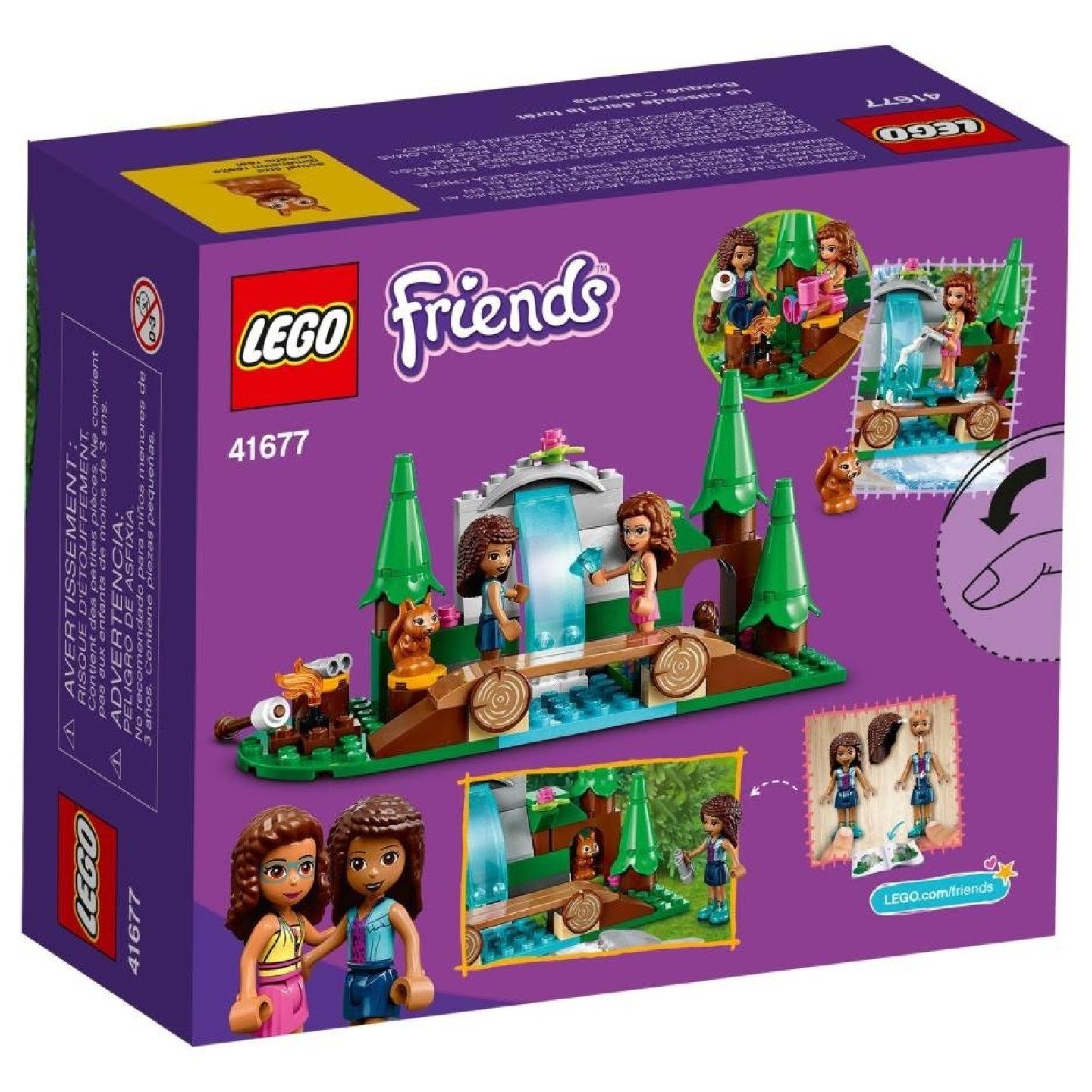 Dobrodružství čeká na každém rohu Model lesa s překrásným vodopádem zahrnuje také LEGO Friends minipanenky Andreu a Olivii a řadu jedinečných, detailně propracovaných prvků, mezi kterými najdete například marshmallow nebo ohniště. Děti si zamilují dobrodružné výpravy, na jejichž konci objeví poklad v podobě drahokamu, který se ukrývá za vodopádem. Díky kompaktním rozměrům model nezabere moc místa a bude se skvěle vyjímat na výstavce v pokojíčku. Svět plný přátelství Hračky LEGO Friends jsou doslova nabité množstvím realistických detailů, které podnítí dětskou představivost. Nechybí roztomilí zvířecí mazlíčci, které si děti zamilují. Vezměte malé stavitele na výlet do městečka Heartlake, kde na ně čekají kamarádi s podobnými zájmy. Hledáte nápaditý dárek od LEGO® Friends pro malé milovníky přírody? Stavebnice Vodopád v lese (41677) je perfektní volbou pro děti, které rády tráví čas venku objevováním přírodních krás. Obsahuje LEGO® Friends minipanenky Andrea a Olivii, figurku veverky, skútr, ohniště, marshmallow, most přes řeku a lesní vodopád. Děti mohou objevovat krásy lesa na skútru, krmit veverku kaštanem, pozorovat přírodu pomocí dalekohledu nebo hledat tajný poklad ukrytý za vodopádem. Skvělý dárek pro milovníky přírody ve věku od 5 let. Tato sada jim umožní přenést si venkovní zábavu dovnitř. Zároveň se jedná o perfektní dárek k narozeninám či Vánocům a skvělou volbu pro deštivé dny. Model měří něco málo přes 7 cm na výšku, 16 cm na šířku a 7 cm do hloubky – ideální velikost na výstavku i pravidelné hraní. Přináší sklápěcí dílek, který umožňuje snadný přístup k zadní části vodopádu. Stavebnice z prostředí městečka Heartlake obsahují známé postavy a reálné lokace. Děti tak mohou objevovat kouzlo přátelství a ponořit se do nekonečného světa nápaditého hraní. Společně s dalšími sadami z této edice – Domek v lese (41679), Kempování v lese (41681) a Lesní jezdecké středisko (41683) – je tato stavebnice od LEGO® Friends ideální volbou pro všechny malé dobrodruhy. Již od roku 1958 splňují všemi zbožňované LEGO® hračky přísné standardy, aby byly kompatibilní a umožňovaly konzistentní spojování a rozebírání. Nové LEGO® sady jsou testovány s ohledem na nejpřísnější globální bezpečnostní standardy.