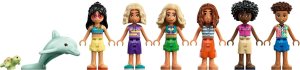 Užijte si rodinnou zábavu na dovolené s touto akční stavebnicí pro holky a kluky od 8 let. Stavebnice LEGO® Friends (42673) Rodinná dovolená u pláže je plná příběhů a obsahuje 6 minipanenek LEGO Friends, figurku delfína a želvy a doplňky pro kreativní hraní. Postavte letovisko a pak se vydejte na napínavé dobrodružství s plážovými aktivitami a vodními sporty. Najděte minci pomocí detektoru kovů, zahrabte postavičku do písku a užijte si klasickou plážovou rodinnou zábavu! Prozkoumejte půjčovnu s ploutvemi, šnorchly a surfovacími prkny. Objevte skrytou želví jeskyni, vyzkoušejte skluzavku nebo navštivte stánek se zmrzlinou a pak si odpočiňte u ohniště. Vymýšlení bude pokračovat uvnitř budovy, kde najdete ložnici a koupelnu. Objevte další kreativní hračky ze světa LEGO Friends (prodávají se samostatně). Stavějte společně s kamarády a rodinou – aplikace LEGO Builder nabízí zábavný zážitek ze společného stavění. Zábava pro celou rodinu – Stavebnice Rodinná dovolená u pláže pro holky a kluky od 8 let obsahuje 6 minipanenek, figurku delfína a želvy a doplňky pro kreativní hraní Plážová stavebnice plná příběhů – Tento model nabitý akcí obsahuje sestavitelné šlapadlo, plážovou scénu a letovisko se spoustou detailů, které inspirují ke kreativnímu vyprávění 6 minipanenek a 2 mořští živočichové – Stavebnice vypráví příběh Novy, která se vydává na zábavnou rodinnou dovolenou s tatínkem a sestrou, a nechybí Liann, Aron a manažerka rezortu Mischa Kreativní hračka s doplňky pro plážové letovisko – Tato stavebnice LEGO® obsahuje spoustu doplňků, včetně nápojů, zmrzlinových kornoutů, surfovacích prken, helem, lopaty, fotoaparátu, kufru a plážového invalidního vozíku Dárek pro celou rodinu – Tato stavebnice plážového resortu z kostek LEGO® představuje skvělý dárek pro děti, které si rády užívají dny na pláži a rády by si postavily model s kamarády a rodinou Online seriál – Inspirujte malé stavitele k dalším kreativním nápadům se stavebnicemi (prodávají se samostatně) a online seriálem LEGO® Friends: Nová kapitola, ve kterém se děti seznámí s postavami z městečka Heartlake Stavějte společně s přáteli a rodinou – Aplikace LEGO® Builder nabízí zábavný stavitelský zážitek, při kterém si užijete společné stavění Rozměry – Stavebnice se skládá z 1140 dílků a hlavní model měří přes 18 cm na výšku, 45 cm na šířku a 24 cm do hloubky