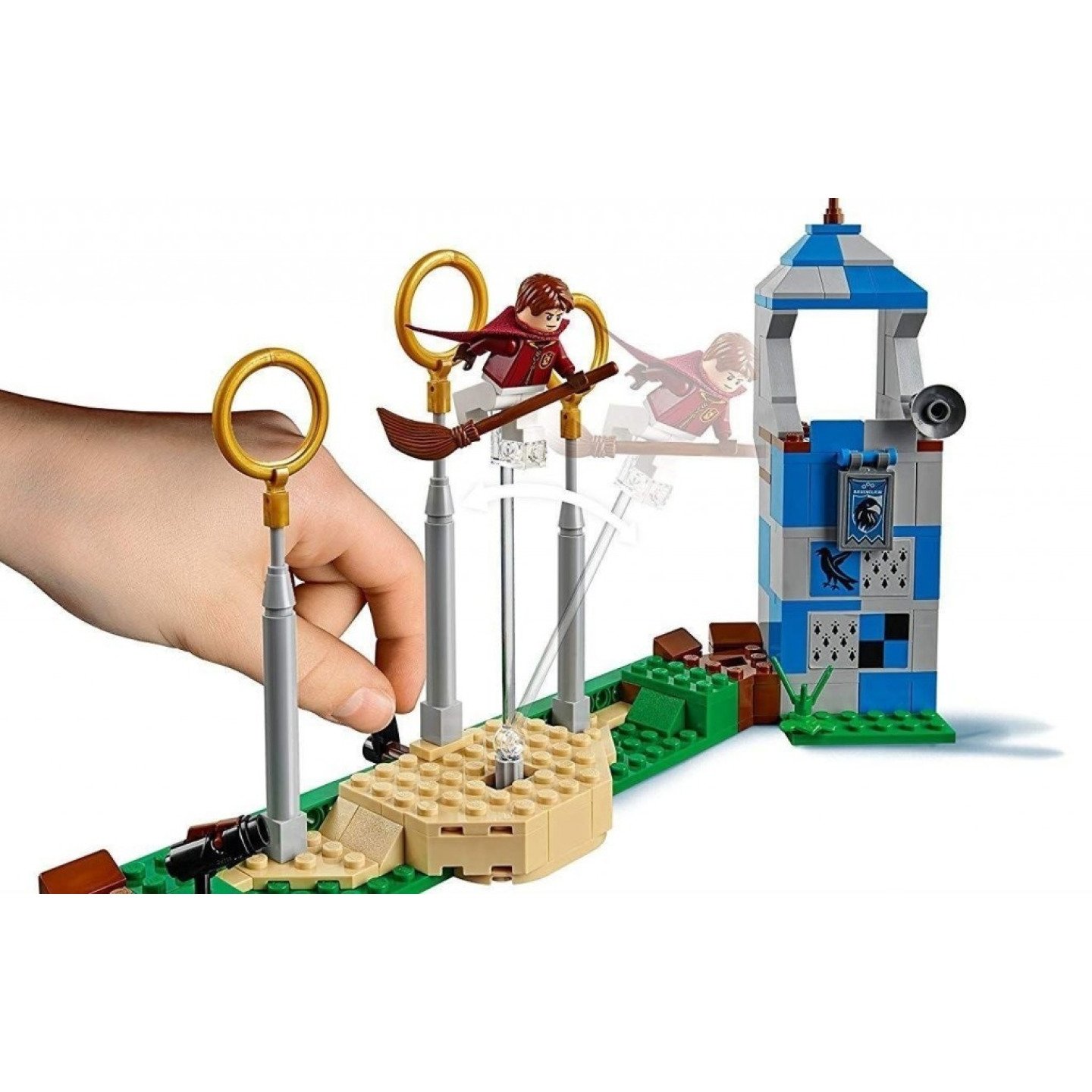 Vyzkoušej si tento nesmírně zábavný čarodějnický sport se sadou 75956 Famfrpálový zápas od LEGO® Harry Potter™. Zúčastni se her spolu s Harrym, Hermionou a profesorem Snapem. Součástí sady jsou věže Nebelvíru, Zmijozelu, Havraspáru a Mrzimoru s tribunami a hracími funkcemi, a k tomu navíc základna s vystřelovačem potlouků a 3 branky s pohyblivým brankářem, který stráží obruče. Prohoď camrál obručí pomocí vystřelovací funkce koštěte a přehraj si slavné famfrpálové scény ze senzačních filmů s Harry Potterem, nebo si vytvoř vlastní zábavné výzvy s touto zábavnou stavebnicí od LEGO Harry Potter. Součástí sady je 6 minifigurek: Harry Potter™, Hermiona Grangerová, Severus Snape™, Oliver Wood, Lucian Bole a Marcus Flint. Obsahuje nebelvírskou věž s otevíracím oknem, zmijozelskou věž s vyklápěcí funkcí ohnivého kouzla, havraspárskou věž s odnímatelným prvkem megafonu, mrzimorskou věž s výsledkovou tabulí, a k tomu navíc základnu se 3 brankovými tyčemi a obručemi, pohyblivým brankářem a vystřelovačem potlouků. Vybal camrál, zlatonku, potlouky a pálku a připrav se na hru! Proklouzni na famfrpálové hřiště otevíracím oknem nebelvírské věže. Vyhoď camrál do vzduchu, čímž odstartuješ famfrpálový zápas, a potom odpal potlouk tak, abys shodil soupeře z koštěte. Použij vystřelovač přimontovaný ke koštěti a prohoď camrál obručí! Pohybuj brankovými tyčemi tak, aby byl brankář před obručemi. Pomoz Hermioně vyslat na profesora Snapea kouzlo pomocí vyklápěcí ohnivé funkce na zmijozelské věži. Povzbuzuj svůj tým pomocí megafonu z havraspárské věže. Měj přehled o průběžném skóre díky výsledkové tabuli na mrzimorské věži. Mezi doplňky najdeš truhlu, 2 hůlky, 4 košťata, camrál, zlatonku, pálku, 2 potlouky, trofej, megafon a výsledkovou tabuli. Každá věž měří přes 18 cm na výšku, 4 cm na šířku a 4 cm do hloubky.