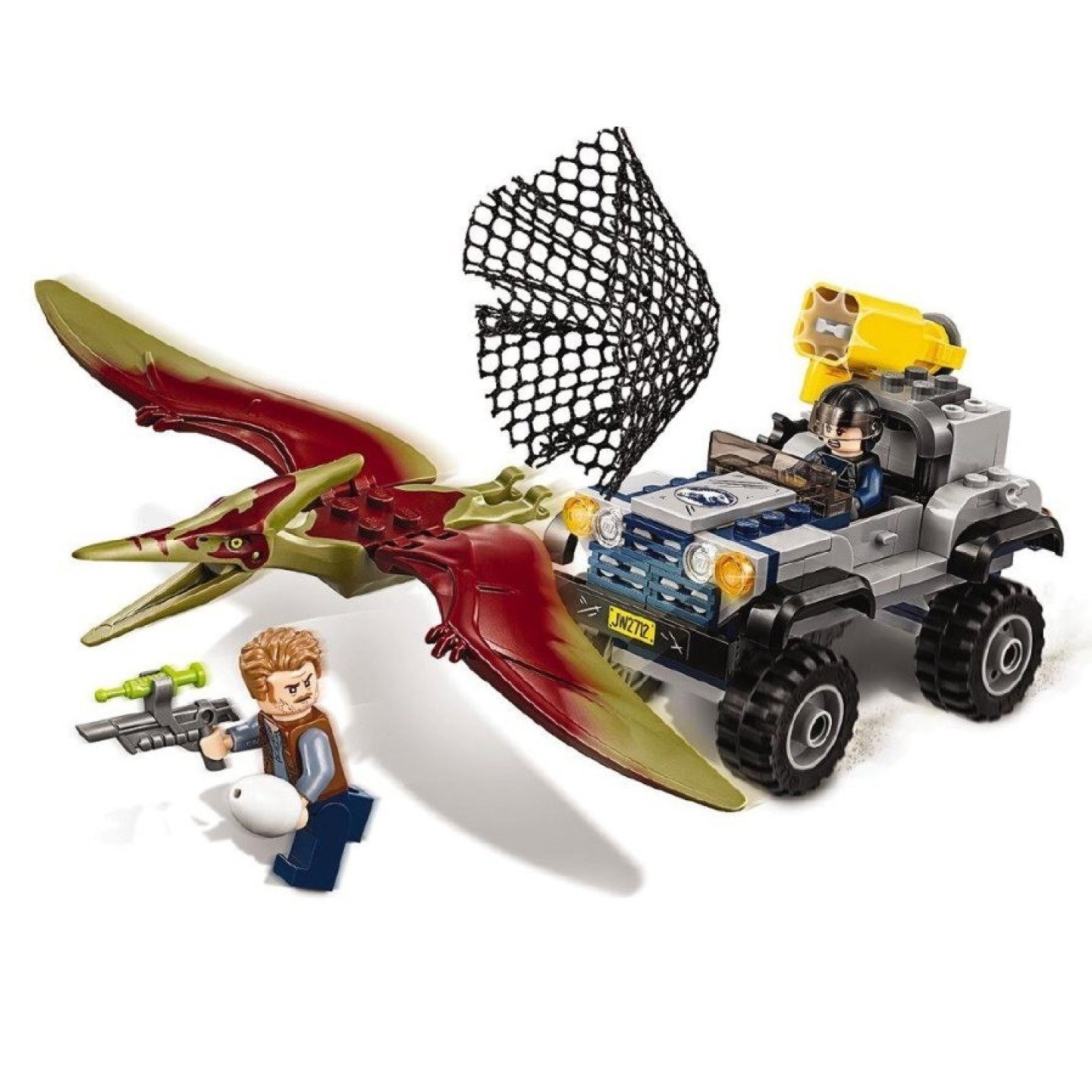Přehrávej si akční scény a honičky inspirované filmem Jurský svět a pomoz Owenovi a stopaři zachránit Pteranodona. Tahle dinosauří LEGO® stavebnice obsahuje rychlý teréňák s vystřelovací sítí, uspávací pušku, 2 minifigurky a figurku Pteranodona. Obsahuje 2 minifigurky: Owen a stopař, navíc figurka Pteranodona. Obsahuje rychlý teréňák s vystřelovací sítí, truhlu na dinosauří vejce a místo na klíč a uspávací pušku. Pteranodon má pohyblivá křídla a klapající čelisti. Obsahuje také uspávací pušku se žlutou injekční stříkačkou. Mezi doplňky najdeš klíč a dinosauří vejce. Tato dinosauří stavebnice je vhodná pro děti od 6 do 12 let. Rychlý teréňák měří přes 8 cm na výšku, 10 cm na délku a 6 cm na šířku. Pteranodon měří přes 3 cm na výšku.