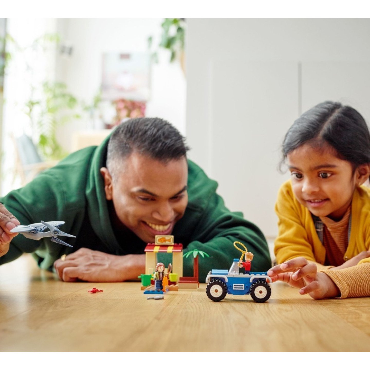 Stavebnice Hon na pteranodona (76943) naučí děti ve věku od 4 let stavět a dá jim možnost prožívat vzrušující příběhy z Jurského světa. Obsahuje modely buginy, stánku s rybami a mola. Dále nechybí polohovatelná figurka pteranodona, 2 minifigurky nebo doplňky jako rybářský prut a laso, které poslouží jako inspirace pro nápadité hraní. Jedná se o úžasný nápad na dárek pro malé milovníky dinosaurů. Digitální návod na stavění Jednoduchý obrázkový návod představuje perfektní řešení pro děti, které ještě neumí číst. V bezplatné aplikaci LEGO® s návody na stavění najdete také digitální návod a speciální nástroje přibližování a otáčení. Děti si tak při stavění užijí ještě více zábavy. Stavějte společně Stavebnice LEGO 4+ představují vstupenku do rozsáhlého světa oblíbených filmů, známých postav a každodenních hrdinů. Modely využívají začátečnické kostky, takže s drobnou pomocí staršího sourozence nebo dospělého člena rodiny si se stavěním vozidel, budov a dalších výtvorů poradí i stavitelé, kteří jsou ve světě LEGO úplnými nováčky. Stavebnice pro začátečníky – darujte dětem ve věku od 4 let zábavný první stavitelský zážitek v podobě stavebnice LEGO® Jurassic World Hon na pteranodona (76943) s figurkou dinosaura a modelem buginy 2 minifigurky LEGO® – dinosauří stavebnice obsahuje minifigurky Maisie a Owena Gradyho s řadou doplňků, mezi kterými najdete rybářský prut a laso k chycení figurky pteranodona Jednoduchý model buginy a mola – vozidlo používá jako podvozek začátečnickou kostku, díky které je sestavení hračka, a nabízí místo k usazení Owena Gradyho. Tematičnost mola podtrhují dílky ryby a kraba Ideální dárek – tato začátečnická stavebnice LEGO® Jurassic World s 91 dílky představuje zábavný dárek k narozeninám, Vánocům či jakékoliv jiné příležitosti pro děti ve věku od 4 let Hraní kdykoli a kdekoli – molo měří přes 9 cm na výšku, 12 cm na šířku a 13 cm do hloubky. Model se tak dětem pohodlně vejde do batohu, takže si ho můžou vzít s sebou na návštěvu ke kamarádům Zábava pro celou rodinu – začátečnické modely, se kterými si s drobnou pomocí staršího sourozence nebo dospělého člena rodiny děti hravě poradí Tištěný a digitální návod – v krabici najdete podrobné pokyny. Nenechte si ujít ani aplikaci LEGO® s návody na stavění, kde najdete digitální instrukce, a k tomu navíc nástroje přibližování a otáčení Budování kreativity – stavebnice LEGO® Jurassic World 4+ zábavným způsobem uvedou malé nadšence do říše dinosaurů a pomohou jim hravou formou rozvíjet fantazii Vysoká kvalita – dílky LEGO® splňují náročné oborové standardy, díky čemuž jsou konzistentní a umožňují pevné spojování Vždy bezpečné – kostky a dílky LEGO® jsou testovány maximálním možným způsobem, díky čemuž splňují nejpřísnější globální bezpečnostní standardy