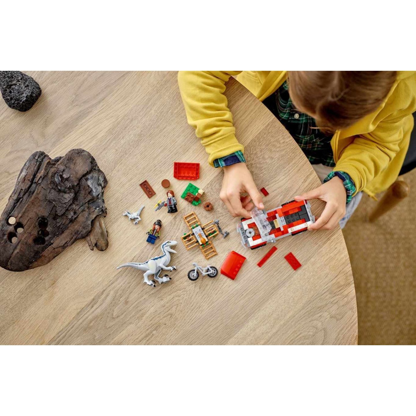 Malí milovníci dinosaurů a parádních vozidel si stavebnici LEGO® Jurassic World Odchyt velociraptorů Blue a Bety (76946) doslova zamilují. Stavebnice inspirovaná strhující scénou z filmu Jurský svět Nadvláda obsahuje model náklaďáku, motorku, dinosauří klec s pastí a kuřecí stehýnko jako návnadu pro dinosaury. Kreativní hraní Stavebnice pro děti od 6 let obsahuje 2 minifigurky: Maisie a Rainna Delacourta s uspávací puškou. Nechybí ani figurky dinosaurů Blue a Bety, se kterými děti mohou prožít množství původní i vlastních příběhů. Díky jednoduchému návodu, který najdete v krabici, si s modely hravě poradí i stavitelé, pro které jsou kostky LEGO novinkou. Pro ještě větší porci zábavy je možné modely kombinovat s dalšími stavebnicemi z řady LEGO Jurassic World. Fantastické dárky Stavebnice z řady LEGO Jurassic World s figurkami dinosaurů, minifigurkami a sestavitelnými modely vozidel, které se skvěle hodí na hraní i na výstavku, zaručeně potěší fanoušky všech věkových kategorií. Dinosauří stavebnice s náklaďákem – dopřejte dětem možnost prožít na vlastní kůži scény z filmu Jurský svět Nadvláda prostřednictvím parádní stavebnice Odchyt velociraptorů Blue a Bety (76946) 2 dinosauři a 2 minifigurky LEGO® – Maisie a Rainn Delacourt s uspávací puškou, polohovatelná figurka velociraptora Blue a klasická figurka Bety pro ještě větší porci akčních dobrodružství Model náklaďáku, dinosauří klec a motorka – součástí klece, kterou lze naložit na korbu nákladního auta, je i past na Betu. Jako návnada dokonale poslouží kuřecí stehýnko Skvělý nápad na dárek – stavebnice představuje úžasný dárek k narozeninám, Vánocům či jakékoliv jiné příležitosti pro kreativní děti starší 6 let, které si rády hrají samostatně nebo s kamarády Stavějte a kombinujte – náklaďák měří přes 6 cm na výšku, 14 cm na délku a 6 cm na šířku a celou stavebnici lze kombinovat s ostatními sadami z řady LEGO® Jurassic World Podrobný návod – přemýšlíte, že koupíte tuto stavebnici se 173 dílky někomu, kdo je ve světě stavebnic LEGO® nováčkem? Bez obav. Součástí je ilustrovaný návod, díky kterému bude stavění hračka Stavebnice LEGO® Jurassic World – objevte řadu výstavních modelů pro děti i dospělé, se kterými si lze přehrávat oblíbené scény i vytvářet vlastní příběhy Vyrobeno z kvalitních materiálů – už od roku 1958 splňují dílky LEGO® přísné standardy, díky čemuž jsou vzájemně kompatibilní a umožňují konzistentní spojování a rozebírání Bezpečnost zaručena – kostky a dílky LEGO® pouštíme na zem, drtíme, kroutíme, zahříváme a analyzujeme, abychom zajistili, že splňují přísné globální bezpečnostní standardy