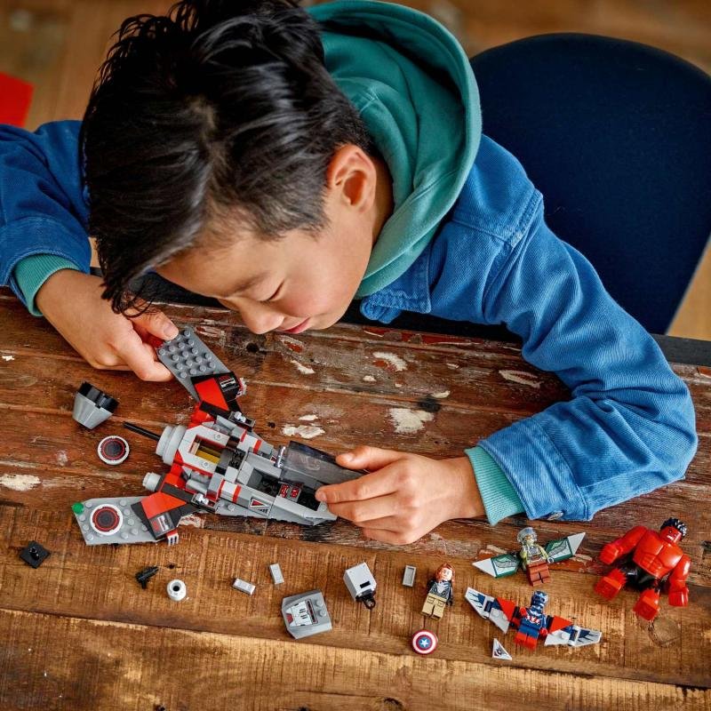 Fanoušci akčních filmů si zamilují propracované detaily a minifigurky oblíbených hrdinů, které najdou ve stavebnici LEGO® Marvel (76292) Souboj: Kapitán Amerika vs. Red Hulk. S touto superhrdinskou stavebnicí se děti od 8 let pustí do akčních dobrodružství s Kapitánem Amerikou vysoko v oblacích! Součástí této stavebnice je působivá řada minifigurek: Kapitán Amerika a Falcon (oba mají zatahovací křídla), Red Hulk a Ruth Bat-Seraph. Nechybí velký otevírací kokpit s prostorem pro minifigurku pilota. Děti tento sestavitelný model snadno uchopí do rukou a mohou s ním létat a útočit pomocí 2 vystřelovačů. Horní část stíhačky lze odejmout a odhalit skrytý úložný prostor s místem na malé dílky a záhadné kovy v zadní části. Model stíhačky se skvěle hodí k nezávislému hraní. Děti mohou přibližovat a otáčet stavebnice ve 3D a sledovat svůj pokrok pomocí zábavné a intuitivní aplikace LEGO Builder. Zábavná stíhačka superhrdinů – Se stavebnicí LEGO® Marvel Souboj: Kapitán Amerika vs. Red Hulk si poskládáte model tryskáče, se kterým se děti od 8 let vydají na nekonečná akční dobrodružství v oblacích Minifigurky LEGO® Marvel Avengers – Součástí stavebnice jsou 4 minifigurky: Kapitán Amerika a Falcon (oba mají zatahovací křídla), Red Hulk a Ruth Bat-Seraph Akční tryskáč – Děti tento sestavitelný model snadno uchopí do rukou a mohou s ním létat. Stíhačce nechybí otevírací kokpit, 2 vystřelovače a odnímatelný úložný prostor na malé dílky a tajemné medaile Doplňky Kapitána Ameriky – Tato stavebnice z řady LEGO® Marvel Avengers je první sada, ve které najdete Kapitána Ameriku se zatahovacími křídly a slavným štítem Dárek LEGO® Marvel Avengers pro děti – Malí milovníci stíhaček, Kapitána Amerika, Falcona a Red Hulka si s touto superhrdinskou stavebnicí užijí nekonečnou porci kreativního hraní 3D průvodce stavěním – Děti si mohou stáhnout aplikaci LEGO® Builder a vychutnat si pohlcující stavitelský zážitek s digitálními funkcemi přibližování a otáčení modelů ve 3D a možností ukládání stavebnic a zobrazení postupu ve stavění Sady LEGO® Marvel – Rozsáhlá řada stavebnic a figurek LEGO® Marvel přináší neomezené možnosti tvůrčího hraní a stavění Rozměry – Stavebnice se skládá z 223 dílků a model stíhačky měří přes 4 cm na výšku, 19 cm na délku a 18 cm na šířku