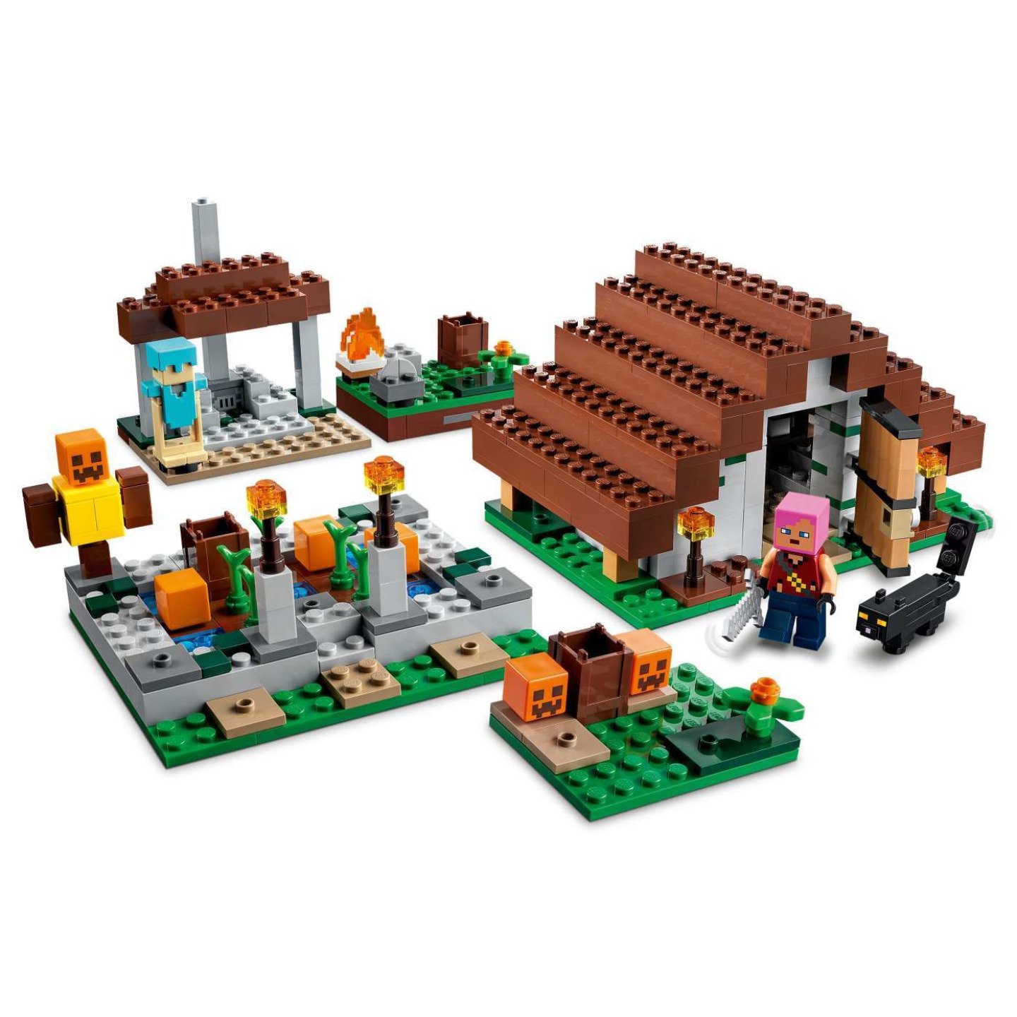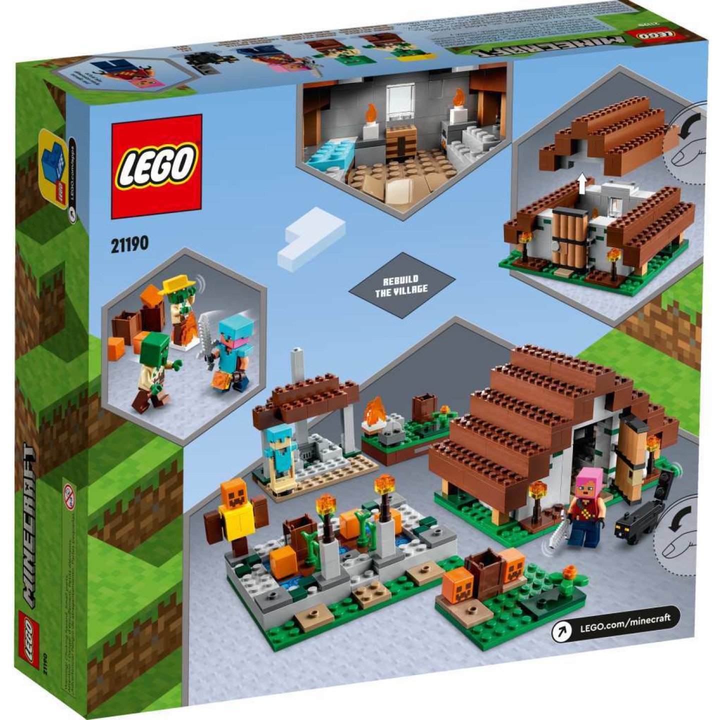 Hráči Minecraftu se mohou těšit na spoustu akce a kreativní stavění na motivy jejich oblíbené hry s tvůrčí stavebnicí Opuštěná vesnice (21190) od LEGO® Minecraft. Model na motivy Minecraftu sestávající z více oddílů Tento všestranný model je tvořený 4 částmi: domem zombie lovce s postelí, troubou, svícemi, stolem na tvoření, pochodněmi a lukostřeleckým terčem; pracovištěm zombie vesničana s vysokou pecí, ohněm, stojanem na brnění a diamantovým brněním; dýňovým políčkem zombie farmáře s kompostovačem a pochodněmi; a opuštěným domem s dýněmi, barely, řezačem kamene a černou kočkou. Hráči mají za úkol převzít opuštěnou vesnici od zombie a přestavět si ji podle sebe, čímž se připraví na další dobrodružství ve světě Minecraft. Akční model pro hráče Minecraftu – Stavebnice Opuštěná vesnice (21190) od LEGO® Minecraft nabízí dětem možnost uplatnit jejich znalosti ze světa Minecraftu při osvobozování a přestavování vesnice ovládané zombie Model tvořený 4 částmi – Součástí jsou 2 zombie a zombie lovec, tábořiště zombie lovce, pracoviště zombie vesničana, dýňové políčko zombie farmáře, opuštěný dům a spousta autentických doplňků Kreativní hraní neberoucí konce – Hráči musejí získat zpátky vesnici, kterou ovládly zombie, a poté si ji přestavět podle sebe a vydat se na další dobrodružství ve světě Minecraft® Dárek pro děti – Potěšte stavebnicí na motivy hry Minecraft® hráče starší 8 let – k narozeninám, Vánocům či jakékoliv jiné příležitosti Pestré herní možnosti – Opuštěný dům měří přes 8 cm na výšku, 14 cm na šířku a 10 cm do hloubky. Různé prvky lze jednoduše prohazovat a kombinovat s ostatními stavebnicemi z této řady Minecraft® v reálném světě – Stavebnice LEGO® Minecraft dávají dětem možnost novým kreativním způsobem prožívat oblíbenou videohru a postavit si z kostek LEGO známe lokace, předměty a protivníky ze hry Záruka kvality – Dílky LEGO® splňují striktní oborové standardy kvality, což znamená, že jsou konzistentní, kompatibilní a umožňují snadné spojování a rozpojování Jistota bezpečnosti – Dílky LEGO® pouštíme na zem, zahříváme, drtíme, kroutíme a analyzujeme, abychom zajistili, že splňují náročné globální bezpečnostní standardy