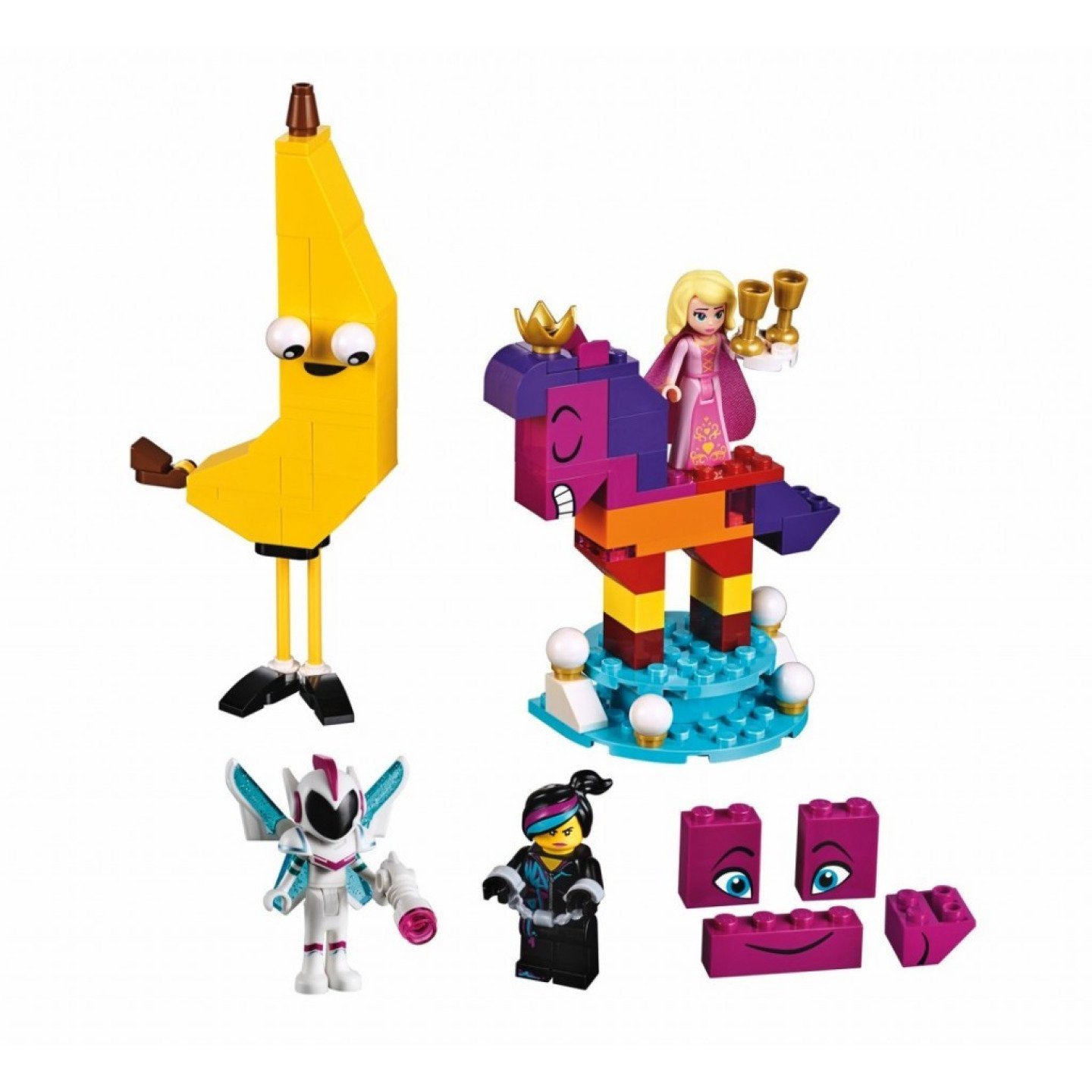 Připoj se s Lucy a setkej se s královnou Libovůlí, která dokáže měnit podobu, v sadě 70824 Představujeme královnu Libovůli, která vznikla na motivy filmu LEGO® PŘÍBĚH 2. Tato zábavná stavebnice obsahuje sestavitelnou královnu Libovůli, která na sebe vzala podobu koně, s otočnou plošinou, a navíc 4 zaměnitelných výrazů ve tváři, které rozhodně přijdou vhod, až z ní opět uděláš hromadu kostek. Tato sada k filmu LEGO PŘÍBĚH 2 obsahuje i sestavitelnou figurku Banarnara, minipanenky Milé Mely a Susan a minifigurku Lucy. Obsahuje 5 postav z filmu LEGO® PŘÍBĚH 2: figurky Banarnara a královny Libovůle, která na sebe vzala podobu koně, a připravované novinky pro leden 2019 – minipanenky Milé Mely a Susan a minifigurku Lucy. Tato zábavná stavebnice obsahuje otočnou plošinu pro královnu Libovůli, která na sebe vzala podobu koně. Udělej opět z královny Libovůle, která dokáže měnit svou podobu, hromadu kostek s 4 zaměnitelnými výrazy ve tváři. Obsahuje zbraň Milé Mely. Mezi doplňky najdeš 2 Susaniny zlaté poháry a podnos a pouta pro minifigurku Lucy z filmu LEGO® PŘÍBĚH 2. Přehrávej si znovu díky této kreativní stavebnici scény z filmu LEGO® PŘÍBĚH 2. Královna Libovůli v podobě koně s otáčecí plošinou měří přes 11 cm na výšku, 9 cm na délku a 6 cm na výšku. Banarnar měří přes 3 cm na výšku.