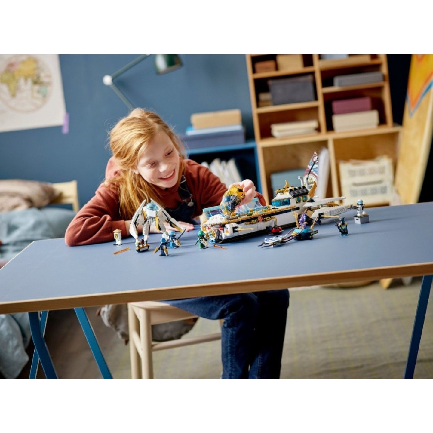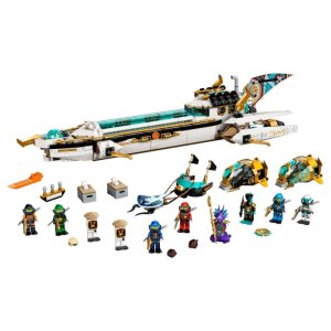 Součástí modelu je 10 minifigurek a celá řada parádních funkcí – 2 pružinové vystřelovače, otevírací kokpit, skládací křídla, odnímatelný robot a 2 miniponorky. Malí nindžové tak mohou popustit uzdu své fantazii! Prémiová sada NINJAGO Stavebnice z podmořského prostředí obsahuje 10 působivých minifigurek: potápěče Kaie, potápěčku Nyu, potápěče Zanea, potápěče Jaye, potápěče Colea a potápěče Lloyda (všechny minifigurky na sobě mají ploutve, potápěčský oblek a drží v rukou zbraně), proti nimž stane čtveřice padouchů tvořená princem Kalmaarem, strážcem Maaray a 2 Wu Boty. Kreativní a zábavné stavebnice pro děti Stavebnice NINJAGO děti přenesou do světa fantastické akce. Malí stavitelé si užijí zábavu při vytváření těchto jedinečných modelů, aby se následně mohli vrhnout vstříc dobrodružstvím po boku nindža hrdinů. Utkají se na nich s celou řadou protivníků, které jim pomůže zdolat úžasná kolekce stíhaček, draků a robotů. Stavebnice Odměna na vlnách (71756) od LEGO® NINJAGO® nabízí akční model ponorky s parádními funkcemi, díky kterým si fanoušci nindžů budou moci přehrávat úchvatné příběhy pod mořskou hladinou. Součástí je 10 minifigurek ze seriálu NINJAGO®: Seabound: potápěč Kai, potápěč Cole, potápěč Jay, potápěč Lloyd, potápěč Zane a potápěčka Nya, princ Kalmaar, strážce Maaray a 2 Wu Boti. Odměna na vlnách má 2 pružinové vystřelovače, 2 sklápěcí křídla, otevírací kokpit a odnímatelného robota. Navícnese 2 parádní miniponorky. Model ponorky čítající 1 159 dílků pro děti od 9 let představuje parádní narozeninový nebo vánoční dárek, který si malí stavitelé rádi vezmou na návštěvu ke kamarádům, aby udělali dojem. Odměna na vlnách měří přes 15 cm na výšku, 59 cm na délku a 30 cm na šířku – ideální velikost na to, aby si s ní děti mohly hrát doma nebo si ji vystavit. Nenechte si ujít ani další stavebnice NINJAGO® inspirované seriálem NINJAGO: Seabound, jako jsou například Vodní drak (71754), Lloydův vodní robot (71750) a Chrám nekonečného moře (71755). Řada LEGO® NINJAGO® nabízí úžasnou sbírku propracovaných stavebnic, které děti zábavným způsobem učí nindžovským hodnotám, jako je odvaha, sebeobětování a rodina. LEGO® kostky už více než šest desetiletí vyrábíme z těch nejkvalitnějších materiálů, díky čemuž je zaručeno, že je lze vždy bezpečně spojovat a oddělovat – není zapotřebí použít nindža dovednosti! LEGO® kostky splňují nejpřísnější bezpečnostní normy, takže děti jsou v bezpečných rukou.