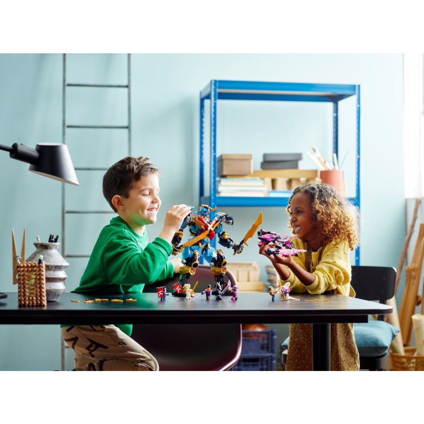 Děti od 10 let si mohou se stavebnicí Nyin robot Samuraje X (71775) připomenout strhující akci ze seriálu NINJAGO®: Crystallized. Stavebnice potěší působivým robotem s pohyblivými koleny, pažemi, nohama a kyčlemi, který je vyzbrojen 2 meči, 2 pružinovými vystřelovači a vybaven kokpitem pro Nyu. Prémiová stavebnice, která ohromí kamarády Tato parádní stavebnice je doslova nabitá 8 minifigurkami. Čekají na vás samurajka X Nya, zlatý Jay, mistr Wu, přízrak Garmadon, Lil’ Nelson, generál Pythor, mechanik a mstivý válečník. V mnoha případech se jedná o exkluzivní, zbrusu nové modely, s nimiž si můžete ihned přehrávat vzrušující bitvy! Zábavný digitální zážitek pro stavitele LEGO® Součástí jsou interaktivní digitální pokyny, s nimiž bude stavitelský zážitek ještě zábavnější. Nástroje přibližování a otáčení, které jsou k dispozici v bezplatné aplikaci s návody na stavění LEGO pro chytré telefony a tablety, vám pomohou vizualizovat si model, zatímco na něm pracujete. V aplikaci si jejnavíc můžete kdykoli uložit. Model robota s nindži – Se stavebnicí Nyin robot Samuraje X (71775) od LEGO® NINJAGO si mohou děti přehrát akční scény ze seriálu NINJAGO®: Crystallized 8 minifigurek – Součástí jsou samurajka X Nya, zlatý Jay, mistr Wu, přízrak Garmadon, Lil’ Nelson, generál Pythor, mechanik a mstivý válečník. Akci ve stylu NINJAGO® tak již nic nestojí v cestě Pohyblivý model robota – Robot zaujme pohyblivými koleny, pažemi, nohama a kyčlemi, 2 meči, 2 vystřelovači a kokpitem pro Nyu Ještě více akce– Nenechte si ujít 7 dalších modelů na motivy seriálu NINJAGO®: Crystallized, včetně stavebnic Lloydův zlatý ultra drak (71774), Zaneova zlatá dračí stíhačka (71770) a Křišťálový král (71772) Tip na dárek pro fanoušky LEGO® – Tato stavebnice čítající 1 003 dílků je vhodná jako narozeninový dárek pro děti od 9 let, které zbožňují roboty a minifigurky Model, který ohromí kamarády – Nyin robot Samuraje X měří přes 32 cm na výšku, takže si jej děti mohou mezi jednotlivými dobrodružstvími parádně vystavit v pokojíčku Interaktivní digitální stavění – Bezplatná aplikace s návody LEGO® dětem umožňuje přibližovat, otáčet a vizualizovat si digitální verzi jejich modelu na chytrém telefonu nebo tabletu Rozsáhlá řada LEGO® NINJAGO® – Děti mají na výběr z nepřeberného množství draků, chrámů, robotů a vozidel, s nimiž si mohou hrát na akční nindža hrdiny Špičková kvalita – Kostky LEGO® již od roku 1958 vyrábíme tak, aby je bylo možné vždy bezpečně spojovat a oddělovat. Není k tomu zapotřebí nindžovské síly Testováno s ohledem na bezpečnost – Kostky LEGO® procházejí přísnými testy, aby bylo zajištěno, že splňují přísné globální bezpečnostní normy