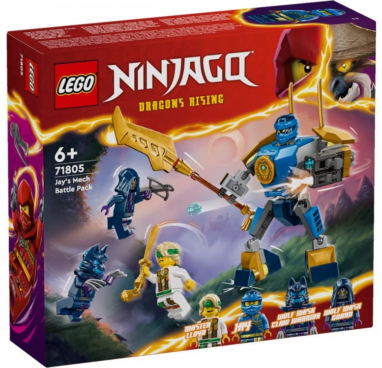 Děti od 6 let se stavebnicí LEGO® NINJAGO® (71805) Bojový balíček Jayova robota znovu prožijí akční bojové scény z 2. řady televizního seriálu NINJAGO® Dračí povstání. Součástí této nindžovské stavebnice je robotický oblek s pohyblivými pažemi, nohama a trupem, který třímá velký zlatý meč a střílí ze 2 vystřelovačů. Součástí této stavebnice jsou 4 figurky NINJAGO a spousta doplňků. Jay je ozbrojen zlatým mečem a minifigurka mistra Lloyda třímá 2 zlaté katany. Válečník s drápem a vlčí maskou má dlouhé drápy na obou rukou a válečník s vlčí maskou má samostříl. V dalších stavebnicích z řady LEGO® NINJAGO se sestavitelnými hračkami s nindžovskou tematikou najdete draky, vozidla a chrámy a děti si užijí hodiny zábavného hraní se svými oblíbenými hrdiny. Aplikace LEGO Builder vám a vašemu dítěti ukáže snadnou a intuitivní cestu stavitelským dobrodružstvím pro skládání modelu. Přibližujte a otáčejte modely ve 3D, ukládejte si stavebnice a sledujte svůj postup. Akcí nabitý model robotického obleku pro děti – Děti od 6 let si s dobrodružnou stavebnicí Bojový balíček Jayova robota připomenou bitvy z 2. řady televizního seriálu NINJAGO® Dračí povstání Pohyblivý robot – Robotický oblek má pohyblivé paže, nohy a trup, drží velký zlatý meč a střílí ze 2 vystřelovačů 4 minifigurky NINJAGO® – Součástí této stavebnice je Jay, unikátní minifigurka mistra Lloyda, válečník s drápem a vlčí maskou a válečník s vlčí maskou, se kterými na děti čekají nekonečná dobrodružství Doplňky zbraní – Jay je ozbrojen zlatým mečem, mistr Lloyd má dvě zlaté katany a válečník s vlčí maskou má samostříl Dárek pro malé nindži – Tato dobrodružná stavebnice představuje krásné překvapení pro děti a přinese jim nezapomenutelný stavitelský a herní zážitek Ještě větší dobrodružství s nindži – Prohlédněte si další stavebnice LEGO® NINJAGO® (prodávají se samostatně) a akčními figurkami v robotických oblecích Svět nindžů – Ve stavebnicích LEGO® NINJAGO® najdete draky, vozidla a chrámy a děti se s nimi ponoří do fantastického dobrodružného světa s oblíbenými nindžovskými hrdiny Rozměry – Tato stavebnice LEGO® se skládá ze 78 dílků a součástí je robotický oblek, který měří přes 8 cm na výšku