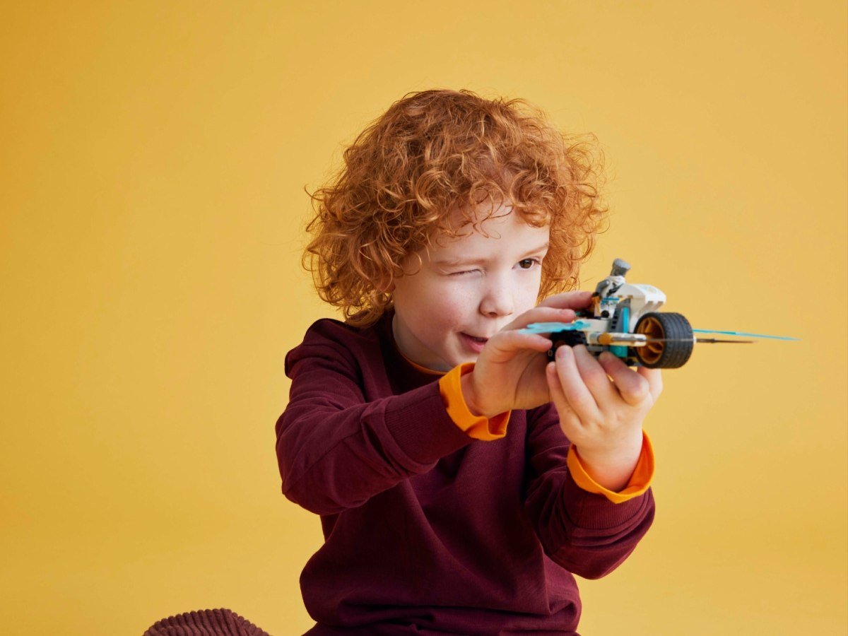 Stavebnice LEGO® NINJAGO® (71816) Zaneova ledová motorka umožňuje klukům a holkám od 7 let přehrávat si akční scény z 2. řady televizního seriálu NINJAGO Dračí povstání. Tato nindžovská stavebnice pro děti obsahuje motorku NINJAGO s pohyblivými koly, zlatými čepelemi a odpružením zadní pneumatiky. Když děti zatlačí na pneumatiku, na obou stranách se vyklopí parádní útočné ledové čepele. Součástí této působivé dobrodružné stavebnice je minifigurka Zanea, se kterou se můžete projet na motorce. Zane je oblečený do zbrusu nového turnajového brnění a v rukou drží 2 katany, se kterými se děti mohou těšit na hodiny hraní rolí ve světě NINJAGO. Ve stavebnicích z řady LEGO NINJAGO se sestavitelnými akčními hračkami s nindžovskou tematikou najdeterobotické obleky, draky a chrámy a fanoušci si s nimi užijí hodiny akčního hraní. Aplikace LEGO Builder vám a vašemu dítěti ukáže snadnou a intuitivní cestu stavitelským dobrodružstvím. Hračka nindžovské motorky pro děti – Děti od 7 let si s dobrodružnou stavebnicí Zaneova ledová motorka připomenou zběsilou akci z 2. řady televizního seriálu NINJAGO® Dračí povstání Motorka NINJAGO® nabitá funkcemi – Motorka má pohyblivá kola, zlaté čepele a odpružení na zadní pneumatice Interaktivní nindžovská hračka – Fanoušci nindžů mohou zatlačit na zadní pneumatiku motorky, vyklopit ledové čepele na obou stranách a přepnout motorku do útočného režimu 1 minifigurka NINJAGO® – Zane je oblečen do zbrusu nového turnajového brnění a drží 2 katany pro nekonečné akční hraní Dárek ze světa NINJAGO® pro děti – Tato akční hračka představuje zábavný stavitelský a herní zážitek a poslouží jako skvělý malý dárek pro děti od 7 let, které milují hraní s nindži Ještě větší dobrodružství s nindži – Prohlédněte si další akční stavebnice LEGO® NINJAGO® (prodávají se samostatně) s draky, robotickými obleky a vozidly Svět nindžů – Ve stavebnicích LEGO® NINJAGO® najdete draky, vozidla a chrámya děti se s nimi ponoří do fantastického dobrodružného světa s oblíbenými hrdiny Rozměry – Tato stavebnice LEGO® NINJAGO® se skládá z 84 dílků a model motorky měří přes 6 cm na výšku, 18 cm na délku a 6 cm na šířku