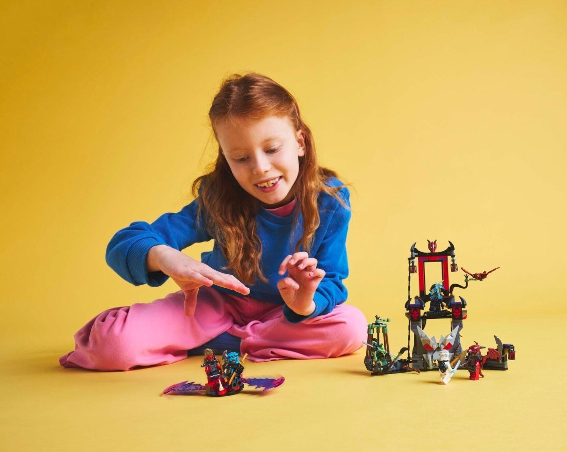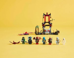 Malí milovníci nindžů si připomenou velkolepé scény boje dobra proti zlu z 3. řady televizního seriálu NINJAGO® Dračí povstání díky stavebnici Vesnice dračí bouře (71841). Tato působivá bojová aréna je plná úchvatných prvků a interaktivních bojových funkcí, se kterými si holky a kluci od 7 let užijí hodiny zábavného hraní. V úkrytu dračích stvoření najdete klec pro zadržení postav nindžů, výsuvný most, jámu s kostrou, do které můžou nindžové spadnout, lano na šplhání, aby nindžové mohli uniknout, a spinner s prostorem pro 2 postavy, které si můžou sednout dovnitř a srazit nepřátele. Součástí akční stavebnice je také 6 minifigurek LEGO® NINJAGO: Zane, Nya, nová minifigurka Roguea a Morra, která se poprvé objevuje v této stavebnici. Nechybí ani dračí bojovník a dračí zvěd a všechny minifigurky jsou vyzbrojeny nindžovskými zbraněmi, se kterými se děti vydají na nindžovská dobrodružství. Stavebnice bitevní arény NINJAGO® pro děti – Holky a kluci od 7 let si se stavebnicí Vesnice dračí bouře připomenou akční scény z 3. řady televizního seriálu NINJAGO Dračí povstání Interaktivní nindžovská stavebnice – Součástí je klec pro zadržení nindžů, zatahovací můstek a jáma s kostrou, do které můžou nindžové spadnout Hračka se spinnerem – Děti umístí 2 postavy do spinneru s bouřnými čepelemi a roztočí ho, aby převrhl nepřátele v bitvách 6 minifigurek NINJAGO® – Tato stavebnice LEGO® obsahuje Zanea, Nyu, zcela nového Roguea, nového Morra, který je exkluzivně k dispozici v této stavebnici, dračího bojovníka a dračího zvěda Narozeninový dárek pro děti – Tato stavebnice LEGO® NINJAGO® představuje zábavný stavitelský a herní zážitek a poslouží jako skvělý narozeninový dárek pro děti od 7 let, které milují hraní na oblíbené nindži Ještě větší dobrodružství s nindži – Prohlédněte si další akční stavebnice NINJAGO® (prodávají se samostatně) s draky, robotickými obleky a vozidly Svět nindžů – Se stavebnicemi LEGO® NINJAGO® se děti ponoří do fantastického dobrodružného světa s oblíbenými nindžovskými hrdiny Rozměry – Stavebnice Vesnice dračí bouře se skládá z 305 dílků a měří přes 20 cm na výšku, 22 cm na šířku a 9 cm do hloubky