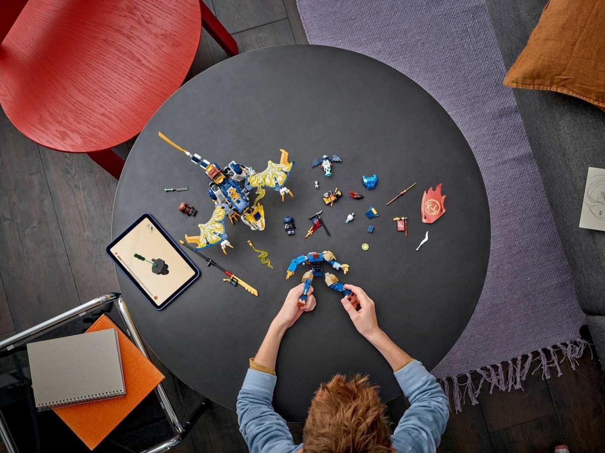 S kombinovanou nindžovskou stavebnicí Rogue a robotický dračí jezdec (71843) si kluci a holky od 8 let připomenou příběhy z 3. řady televizního seriálu NINJAGO® Dračí povstání. Děti si můžou hrát s robotem nebo vůbec prvním robotickým drakem NINJAGO, které pak spojí do úžasného modelu Rogue a robotický dračí jezdec. Robotická figurka má pohyblivé ruce a nohy, otevírací hruď, do které lze umístit minifigurku, a meč. Figurka draka má pohyblivá křídla, hlavu, čelist, nohy a ocas a meč. Součástí stavebnice jsou 4 minifigurky: Nindža válečníci Rogue a Arin a zlotřilá dvojice Rox a Přízračný dračí bojovník, kteří mají vlajku s tajnou zprávou, kterou lze přečíst pouze pomocí Arinovy odhalující čepele. Děti můžou na zadní stranu figurky draka z této stavebnice připevnit roboty ze stavebnic Kaiův bouřný jezdec a robot (71830) a Kaiova robomotorka EVO (71783) (prodávají se samostatně). Tuto stavebnici lze také postavit s pomocí aplikace LEGO® Builder, která vás a vaše dítě provede stavitelským dobrodružstvím. Stavebnice obsahuje 584 dílků. Nindžovská hračka pro děti – Děti od 8 let si s dobrodružnou stavebnicí Rogue a robotický dračí jezdec připomenou bitvy z 3. řady televizního seriálu NINJAGO® Dračí povstání Model robota a draka – Děti si můžou s modely hrát samostatně nebo připevnit pohyblivého robota na záda vůbec prvního robotického draka NINJAGO® a vytvořit tak Roguea a robotického dračího jezdce Pohyblivé figurky – Robotický model má pohyblivé ruce a nohy, otevírací hruď pro umístění minifigurky dovnitř a meč, drak má pohyblivá křídla, hlavu, čelist, nohy a ocas, a k tomu navíc meč 4 minifigurky – Rogue, Arin a dvojice padouchů Rox a Přízračný dračí bojovník, kteří mají prapor s tajnou zprávou, kterou lze přečíst pouze pomocí Arinovy odhalující čepele Narozeninový dárek pro děti – Tato akční hračka představuje zábavný stavitelský a herní zážitek a poslouží jako skvělý dárek pro děti, které milují hraní na nindžovské hrdiny Vyměnitelní roboti – Děti můžou na zadní stranu figurky draka z této stavebnice připevnit také roboty ze stavebnic Kaiův bouřný jezdec a robot (71830) a Kaiova robomotorka EVO (71783) (prodávají se samostatně) Svět nindžů – Se stavebnicemi LEGO® NINJAGO® se děti ponoří do fantastického dobrodružného světa s oblíbenými nindžovskými hrdiny Rozměry – Stavebnice LEGO® pro děti se skládá z 584 dílků a součástí je figurka Rogue a robotický dračí jezdec, která měří přes 19 cm na výšku