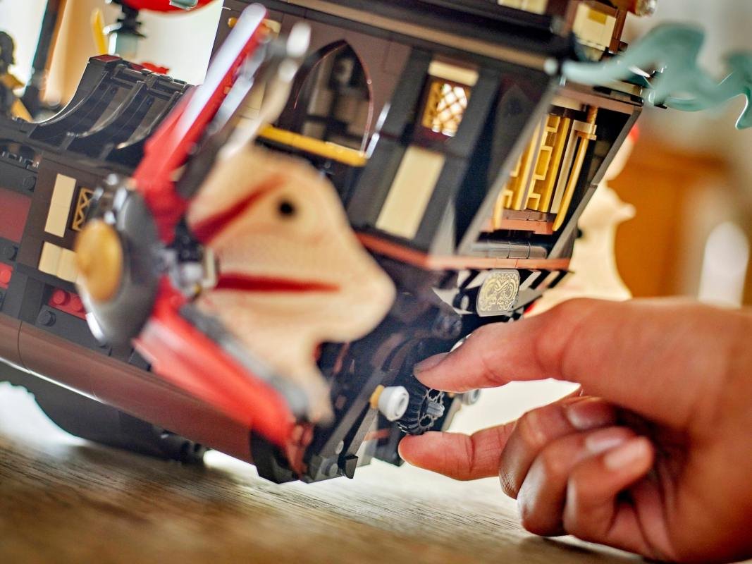 Starší fanoušci NINJAGO® od 14 let čeká úžasný model lodi do sbírky: LEGO® NINJAGO (71848) Chrámová Odměna. Tento velký a propracovaný model lodi je nejnovějším přírůstkem do řady slavných lodí NINJAGO a je plný skvělých detailů a funkcí. Součástí je také podstavec na vystavení, takže fanoušci můžou model snadno vystavit na polici nebo třeba na nočním stolku. Tato interaktivní dobrodružná stavebnice obsahuje vše, co fanoušci nindžů potřebují k tomu, aby si připomněli příběhy z 3. řady televizního seriálu NINJAGO Dračí povstání: ozubené kolo pro otevírání a zavírání plachet, odnímatelné střechy a podlahy pro přístup do interiéru lodi se sushi barem a stolem v hlavní kajutě, který lze sklopit a odhalit tak tajný počítač. Stavebnice obsahuje také 6 minifigurek: Zanea, Colea, Wyldfyre, Nyu, Roguea a zlotřilého Zarkta, kteří mají vlastní nindžovské zbraně. Nindžové mají průsvitnou čepel, která pomáhá odhalit tajnou mapu na kapitánově stole. Stavebnice obsahuje 2387 dílků. Velký model NINJAGO® na hraní i vyprávění – Milovníci nindžů od 14 let si se stavebnicí lodě Chrámová Odměna připomenou akční scény z 3. řady televizního seriálu NINJAGO Dračí povstání Interaktivní stavebnice lodi – Fanoušci NINJAGO® můžou otáčet ozubeným kolem, pohybovat plachtami, odstraňovat střechy a podlahy, aby získali přístup do interiéru a sushi baru, složit stůl v hlavní kajutě a odhalovat tajemství Model lodi s podstavcem na vystavení – Po nekonečných hodinách vyprávění si fanoušci nindžů můžou tuto propracovanou loď vystavit na polici nebo nočním stolku díky podstavci 6 minifigurek – Stavebnice obsahuje Zanea, Colea, Wyldfyre, Nyu, Rogue a Zarkta vyzbrojené zbraněmi a průsvitnou odhalující čepelí, která pomáhá odhalit tajnou mapu na kapitánově stole Dárek pro fanoušky NINJAGO® – Tato stavebnice nabízí zábavný stavitelský a herní zážitek a představuje skvělý dárek pro fanoušky NINJAGO, kteří milují vyprávění Zábavné stavění – Proveďte děti na jejich příštím stavitelském dobrodružství s pomocí intuitivní aplikace s návodem LEGO® Builder. Umožní jim ukládat si stavebnice, sledovat postup a přibližovat a otáčet modely ve 3D, zatímco na nich pracují Svět nindžů – Se stavebnicemi LEGO® NINJAGO® se děti ponoří do fantastického dobrodružného světa s oblíbenými nindžovskými hrdiny Rozměry – Model lodi LEGO® NINJAGO® Chrámová Odměna se skládá z 2387 dílků a vystavený na podstavci měří přes 49 cm na výšku, 58 cm na délku a 26 cm na šířku