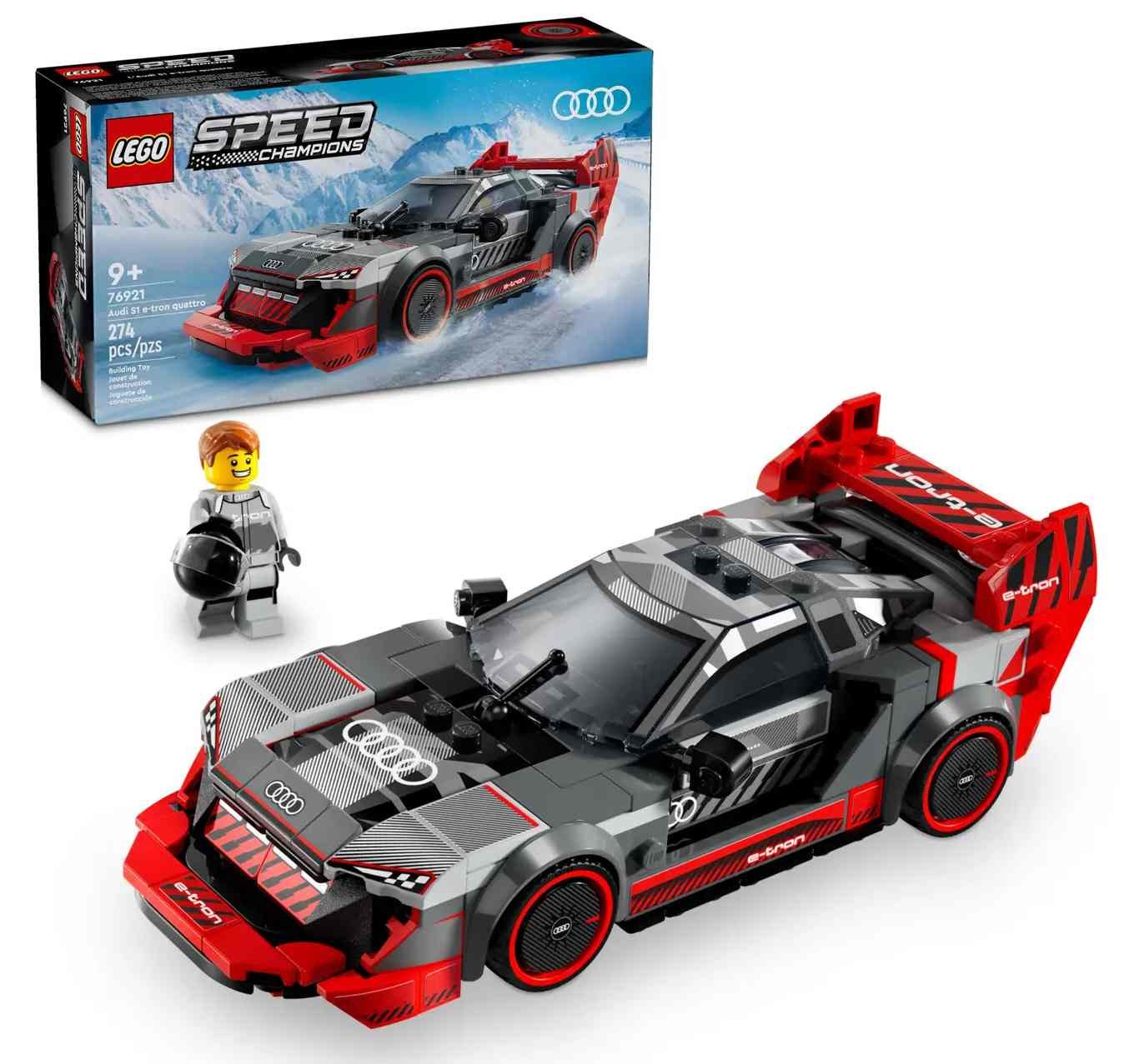Stavebnice LEGO® Speed Champions (76921) Závodní auto Audi S1 e-tron quattro je úchvatná replika modelu z roku 2022, který je inspirovaný vozidlem Sport Quattro S1 z 80. let. Děti od 9 let si toto auto s radostí postaví, vystaví, pustí se s ním do hraní a zařadí jej do své sbírky. Model vozidla z kostek LEGO se pyšní řadou autentických detailů inspirovaných skutečnou předlohou: Dlouhé zadní křídlo, zadní difuzor, dlouhou kapotu, přední splitter a propracovaný interiér s přístrojovou deskou. Součástí je také odnímatelná střecha a minifigurka řidiče, kterou děti usadí dovnitř a vydají se s ní na závodní dobrodružství. Děti i vášniví fanoušci aut si se stavebnicemi Speed Champions postaví repliky ikonických vozů. Postaví si kvalitní modely z kostek LEGO s řadou působivých detailů. Každý model lze postavit pomocí aplikace LEGO® Builder, která vám a vašemu dítěti ukáže snadnou a intuitivní cestu za stavitelským dobrodružstvím. Model vozidla Audi pro děti – Závodní auto Audi S1 e-tron quattro pro děti od 9 let k sestavení, vystavení, hraní i rozšíření sbírky 1 minifigurka – Součástí sestavitelného modelu auta z kostek LEGO® je minifigurka řidiče s helmou, parukou a hasákem, kterou děti usadí za volant a se kterou se vydají na závody Propracované detaily vozidla Audi – Modelu Závodního auta Audi S1 e-tron quattro nechybí zadní křídlo, zadní difuzor, přední splitter a detaily interiéru, jako je ruční brzda Výstavnímodel LEGO® Audi – Až si děti s modelem Audi dohrají, hrdě si ho vystaví na poličce nebo na nočním stolku Darujte auto – Tato stavebnice představuje zábavný stavitelský a herní zážitek a potěší děti od 9 let i dospělé sběratele modelů vozidel Ještě více závodních dobrodružství – Objevte i další vozy z řady LEGO® Speed Champions (stavebnice se prodávají samostatně) Postavte si a vystavte modely slavných vozidel – Se stavebnicemi LEGO® Speed Champions si děti a milovníci aut postaví repliky slavných vozů Rozměry – Model vozidla Audi se skládá z 274 dílků a měří přes 5 cm na výšku, 17 cm na délku a 7 cm na šířku