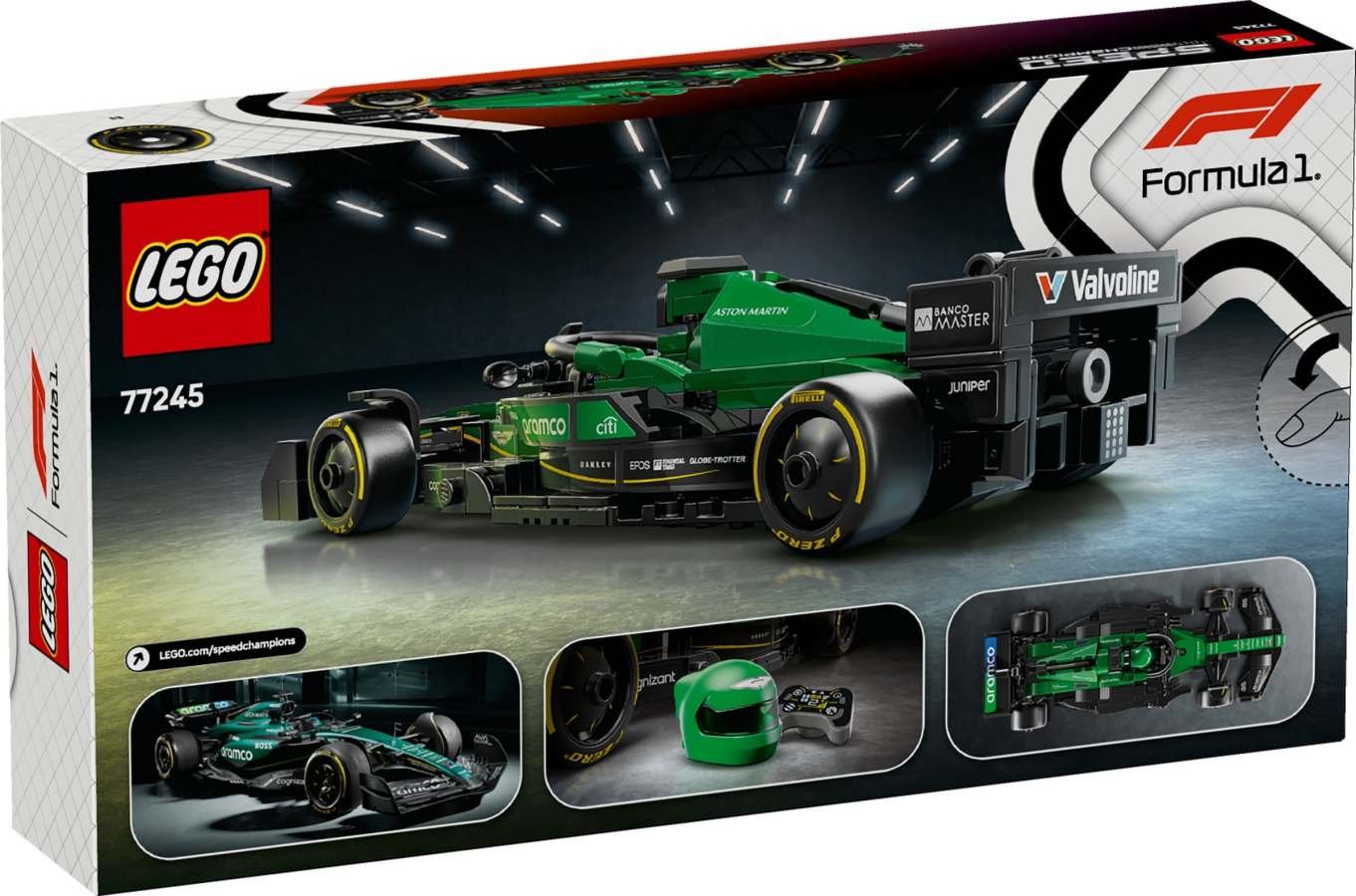 Stavebnice LEGO® Speed Champions (77245) Závodní auto Aston Martin Aramco F1® AMR24 umožní klukům a holkám od 10 let stavět a vystavovat model vozu, se kterým si zahrají na akční závody. Tento model závodního vozu F1 pro děti i dospělé sběratele aut se pyšní prvky inspirovanými vozem, který soutěžil v Mistrovství světa Formule 1 v roce 2024. Závodní auto Aston Martin Aramco F1 má kokpit, který lze otevřít zvednutím svatozáře, zadní křídlo, rovnoběžníkovou nápravu, polepy sponzorů a širší zadnípneumatiky s nápisem „Pirelli“. Součástí stavebnice je také minifigurka jezdce v outfitu Aston Martin Aramco F1 s okřídlenou helmou, kterou můžete umístit do kokpitu a šlápnout na plyn. Stavebnice LEGO Speed Champions umožňují dětem a milovníkům aut stavět modely nejznámějších vozidel na světě, včetně dalších vozů z Mistrovství světa Formule 1 2024 (prodávají se samostatně). Každou stavebnici auta lze postavit s pomocí tištěného návodu na stavění nebo s aplikací LEGO Builder, která vás a vaše dítě provede zábavným digitálním stavitelským dobrodružstvím. Autíčko Aston Martin Aramco F1® pro děti – Stavebnice LEGO® Speed Champions Závodní auto Aston Martin Aramco F1 AMR24 pro kluky a holky od 10 let na stavění, závodění i vystavování 1 minifigurka – Tato stavebnice vozidla obsahuje minifigurku řidiče v kostýmu Aston Martin Aramco F1® a okřídlenou helmu, kterou děti usadí do kokpitu a vydají se s ní na napínavé závody Propracovaný vůz Aston Martin Aramco F1® – Model se pyšní designovými detaily inspirovanými skutečným vozem, který se účastnil závodů F1 v roce 2024, včetně svatozáře, zadního křídla, polepů sponzorů a širších zadních pneumatik s nápisem „Pirelli“ Zábava s F1® pro celou rodinu – Závoďte o šachovnicovou vlajku s celou rodinou s dalšími stavebnicemi z řady LEGO® F1 (prodávají se samostatně) Výstavní model vozu F1® – Děti si vychutnají hraní na závody s modelem vozu Aston Martin Aramco F1 a pak si ho vystaví na polici nebo na nočním stolku Tip na dárek F1® – Tato prémiová stavebnice závodního auta Aston Martin Aramco F1 nabízí zábavný stavitelský a herní zážitek a potěší děti od 10 let i dospělé sběratele modelů vozidel Postavte si modely slavných vozidel – Se stavebnicemi LEGO® Speed Champions si děti a milovníci aut postaví repliky slavných vozů z kostek Rozměry – Tato stavebnice se skládá z 269 dílků a model Závodní auto Aston Martin Aramco F1® AMR24 měří přes 4 cm na výšku, 20 cm na délku a 7 cm na šířku