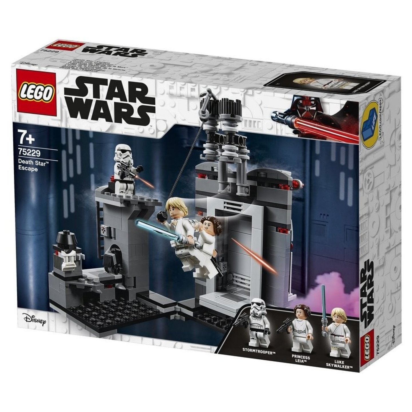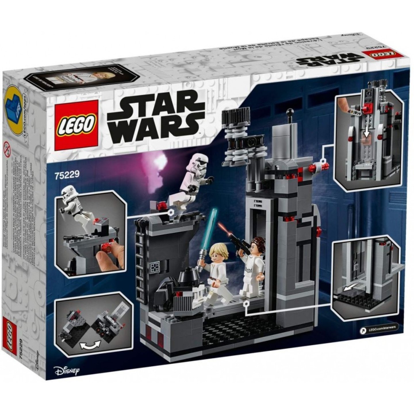 Umožněte vašemu fanouškovi Star Wars™ ponořit se do nezapomenutelných vesmírných dobrodružství se sadou LEGO® Star Wars 75229 Únik z Hvězdy smrti. Tato skvělá sada, která ztvárňuje epickou scénu z filmu Star Wars: Nová naděje, obsahuje Luka Skywalkera a princeznu Leiu, výklopnou Hvězdu smrti s vchodem, pákově ovládanými zavíracími dveřmi a zatahovacím ochozem, a k tomu navíc druhou část s plošinou, přístupovým žebříkem, skrytým myším droidem a otevírací krabicí s elektrickými dalekohledy. Fanoušci jistě rádi umístí Leiu Lukeovi na záda, pomohou mu popadnout kotevní hák a zhoupnout se nad propastí do bezpečí mimo dosah stormtroopera. Obsahuje 3 minifigurky a LEGO figurku myšího droida. Obsahuje 3 minifigurky: Luka Skywalkera, princeznu Leiu a stormtroopera, a k tomu navíc LEGO® figurku myšího droida. Obsahuje výklopnou Hvězdu smrti s vchodem, pákově ovládanými zavíracími dveřmi, zatahovacím ochozem a sloupy s platformou, přístupovým žebříkem, skrytým myším droidem, otevíracím boxem s elektrickým dalekohledem a funkcí, která ti umožní shodit stormtroopera z věže dolů. Mezi zbraněmi najdeš Lukeův světelný meč a 2 blastery. Stavebnice také obsahuje Lukeův kotevní hák. Přehraj si nezapomenutelnou scénu s útěkem z filmu Star Wars™: Nová naděje nebo si vymýšlej vlastní vzrušující kreativní scénáře! Scéna s Hvězdou smrti měří (v rozloženém stavu) přes 15 cm na výšku, 16 cm na šířku a 8 cm do hloubky.