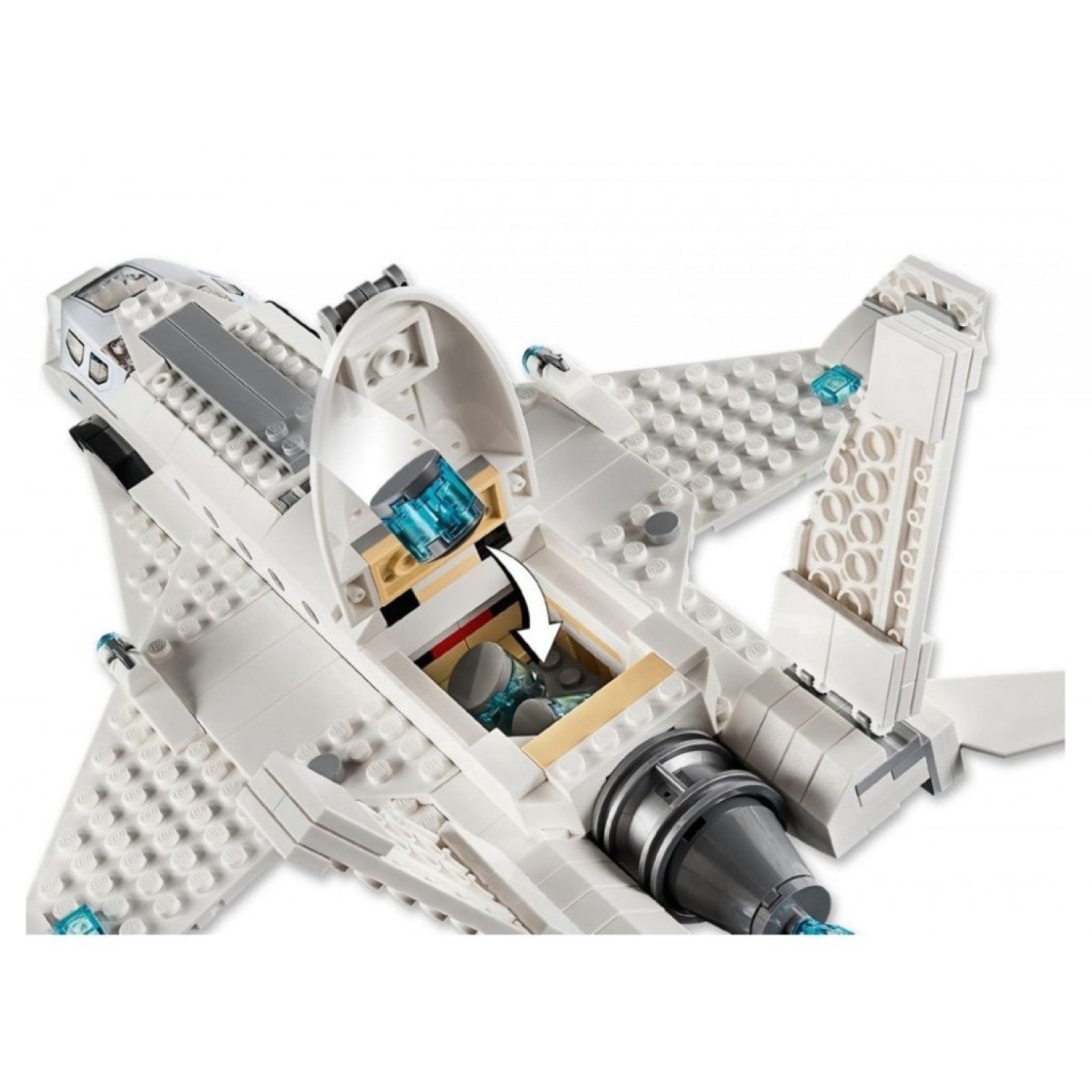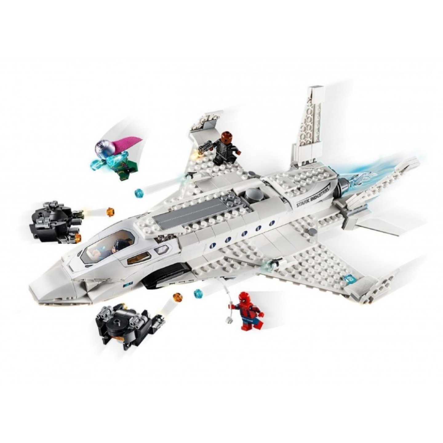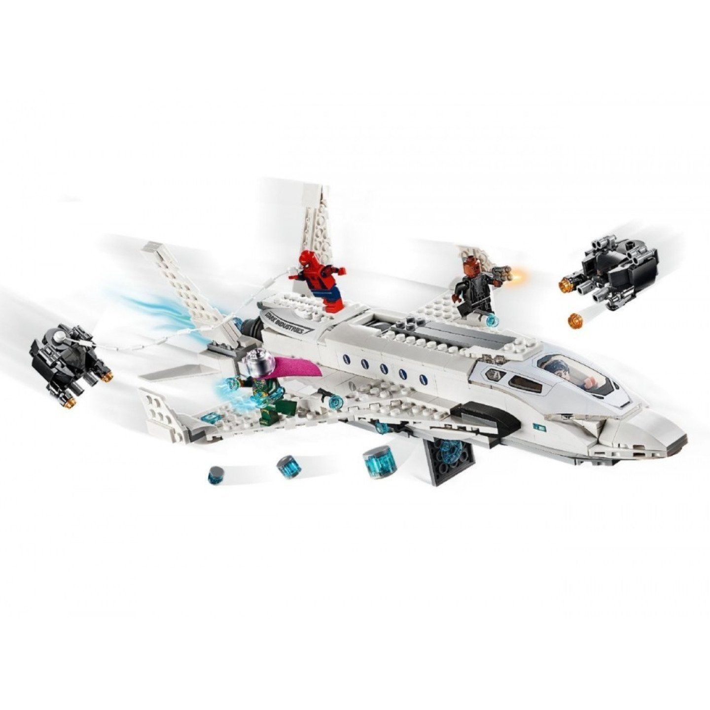 Tato akční stavebnice plná superhrdinů nabízí sestavitelný tryskáč Tonyho Starka se 2 vystřelovači, nastavitelnými křídly, prostorem pro energetické bomby a kokpitem pro dvě minifigurky se zadním sedadlem navíc pro Spider-Mana. Tryskáč ukrývá funkci otevírání poklopu. Stiskni tlačítko, otevři poklop a shoď energetické bomby nebo spusť dolů Spider-Mana na jeho pavučinách. Napínavá sada obsahuje také 2 drony s vystřelovači a 4 minifigurky pro hraní skvělých scén z filmu Spider-Man: Daleko od domova.