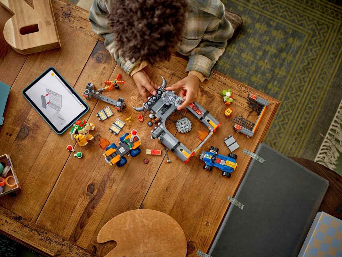 Připravte se na závody se stavebnicí LEGO® Super Mario™ (72039) Mario Kart™ – Bowser a jeho hrad. Tato stavebnice představuje skvělý dárek Nintendo® pro kluky, holky a všechny gamery od 9 let a obsahuje Bowserův hrad, místo, na kterém může Bowser stát, rozkládací stěny, otáčející se Fire Bar a další zábavné funkce. Jezděte, driftujte a vystřelujte krunýře s Bowserem na čtyřkolce Standard ATV a Yoshim v motokáře Mach 8, prorazte hradby, uhýbejte před padajícím Thwompem a svrhněte Lava Bubble. Stavebnice obsahuje 4 figurky LEGO Super Mario: Bowsera, Yoshiho, Thwompa a Lava Bubble. Přidejte figurku LEGO® Mario™, LEGO® Luigi™ nebo LEGO® Peach™ (ze setů 71439, 71440, 71441 nebo 72043 – prodávají se samostatně) a vychutnejte si při řízení interaktivní hraní se zvukovými a vizuálními efekty Mario Kart. Prohlédněte si řadu stavebnic LEGO Super Mario: Mario Kart (prodávají se samostatně) a získejte další vozidla a postavy pro ještě větší porci zábavy. Set obsahuje 1 068 dílků. Bowserův hrad – Pořádejte závody Bowsera proti Yoshimu, prorážejte hradby a vyhýbejte se padajícímu Thwompovi s tímto setem LEGO® Super Mario™: Mario Kart™ pro děti 4 figurky LEGO® Super Mario™ – Tato stavebnice Nintendo® LEGO obsahuje figurku Bowsera, Yoshiho, Thwompa a Lava Bubble a prvek Banana s obličejem Závodní set LEGO® Super Mario™ – Vystřelujte krunýře ze čtyřkolky Standard ATV a motokáry Mach 8, závoďte kolem hradu (nebo skrz jeho rozkládací hradby!), vyhýbejte se otáčejícímu se Fire Baru a spoustu dalšího Interaktivní hraní – Umístěte figurku LEGO® Mario™, LEGO® Luigi™ nebo LEGO® Peach™ (figurky nejsou součástí balení) do modelů mozidel a aktivujte zvukové a vizuální efekty Mario Kart™ troubení, driftování a další Zábavný dárek Nintendo® s postavičkami pro gamery – Darujte tuto stavebnici LEGO® Super Mario™ klukům, holkám a fanouškům od 9 let. K interaktivnímu hraní potřebujete set 71439, 71440, 71441 nebo 72043 (prodávají se samostatně) Nekonečné herní možnosti – Prozkoumejte celou řadu stavebnic LEGO® Super Mario™: Mario Kart™ (prodávají se samostatně) a objevte další sestavitelná vozidla Mario Kart a postavy, se kterými můžete závodit Rozvíjení dětské fantazie – Sety LEGO® Super Mario™ umožňují samostatné i týmové hraní, přináší hodiny zábavy při hraní rolí, sbírání digitálních mincí a kreativní možnosti v podobě rozšiřování a přestavování Rozměry – Stavebnice se skládá z 1 068 dílků a model Bowser’s Castle měří přes 26 cm na výšku, 36 cm na šířku a 21cm do hloubky