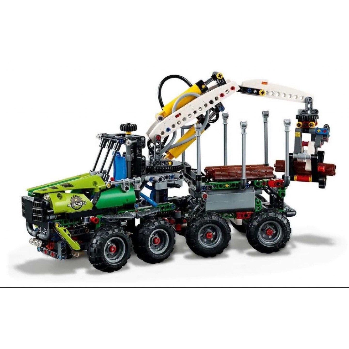 Užij si spoustu zábavy při stavění a hraní se stavebnicí LEGO® Technic 42080 Lesní stroj. Tato propracovaná replika skutečného lesního kombajnu obsahuje spoustu realistických funkcí, včetně funkčních tlumičů, kloubového řízení a mnohosměrné hlavice kombajnu s otáčecími čepelemi. Aktivuj motor LEGO Power Functions, který je součástí sady, a uveď do chodu pokročilý hydraulický systém na ovládání motorizovaného ramene a ruky. Zároveň můžeš otáčet kabinou řidiče a tím pádem i ramenem o více než 180°. Tato pokročilá stavební sada 2 v 1 obsahuje 2 sestavitelné kmeny stromů a lze ji přestavět na drsný Valník na klády. Obsahuje motor LEGO® Power Functions a pokročilý hydraulický systém pro motorizované rameno a ruku. Obsahuje také kloubové řízení, funkční tlumiče, mnohosměrnou hlavici kombajnu s otáčecími čepelemi a velkou otočnou kabinu řidiče. Otevři přívěs a získej přístup k velkému motoru od LEGO® Power Functions. Uveď do chodu pokročilý hydraulický systém na ovládání ramene a ruky, zdvihni kmeny stromů, pak otoč kabinu řidiče a s ní i náklad o více než 180°. Vychází v kombinaci zelené, bílé, černé, šedé, červené a žluté barvy. Tato sada LEGO® Technic je navržena tak, aby ti poskytla úžasné stavitelské zážitky. Model 2 v 1, který lze přestavět na Valník na klády. Lesní stroj se staženým ramenem měří přes 18 cm na výšku, 35 cm na délku a 13 cm na šířku. Valník na klády měří přes 17 cm na výšku, 35 cm na délku a 13 cm na šířku.
