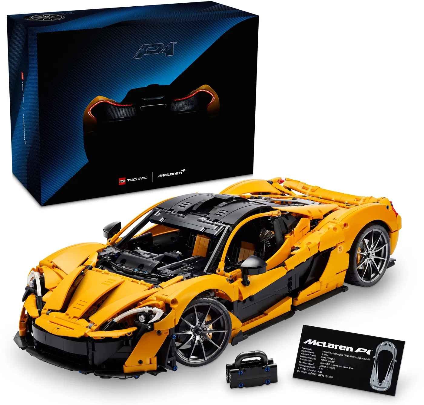 Zažehněte svou lásku k superautům s poutavou stavebnicí LEGO® Technic McLaren P1™ pro dospělé. Ponořte se do stavby propracovaných detailů působivého modelu v měřítku 1:8. Poté si odpočiňte u průzkumu jeho funkcí, jako je 7stupňová převodovka s řadicím bubnem, odpružením a pístovým motorem V8. Obdivujte nastavitelné zadní křídlo a výklopné motýlí dveře, než si hotový model hrdě vystavíte. Stejně jako skutečné auto má i verze LEGO Technic vlastní jedinečné sériové číslo, které nabízí přístup k exkluzivnímu online obsahu. Od zábavného rozbalování až po přidávání posledních detailů – tato stavebnice LEGO Technic přináší obohacující výzvu pro dospělé milovníky stavění. Model představuje ideální dárek pro milovníky superaut a fanoušky McLarenu, kteří si užijí zábavu při stavění tohoto sběratelského kousku. Závodní auto LEGO® Technic pro dospělé – Tato stavebnice McLaren P1™ pro dospělé je nabitá autentickými detaily. Po sestavení se tento sběratelský model v měřítku 1:8 pro fanoušky superaut bude skvěle vyjímat na výstavce Postavte pístový motor V8 a mnoho dalšího – Odpočiňte si u stavění propracovaných detailů tohoto stavitelského projektu, od 7stupňové převodovky s řadicím bubnem přes otevírací dveře, nastavitelné zadní křídlo až po pístový motor V8 Výstavní model auta v měřítku 1:8 – Tato stavebnice pro dospělé představuje obohacující výzvu pro fanoušky LEGO® Technic od rozbalení až po sestavení Dílek s jedinečným sériovým číslem – Stejně jako skutečné auto má i verze LEGO® Technic vlastní jedinečné sériové číslo, které nabízí přístup k exkluzivnímu online obsahu Dárek pro milovníky aut – Tato stavebnice představuje úchvatný výstavní dárek a kreativní stavitelský projekt pro dospělé milovníky LEGO®, nadšence do superaut a fanoušky McLarenu Rozměry – Stavebnice se skládá z 3 893 dílků a model vozidla měří přes 14 cm na výšku, 59 cm na délku a 25 cm na šířku