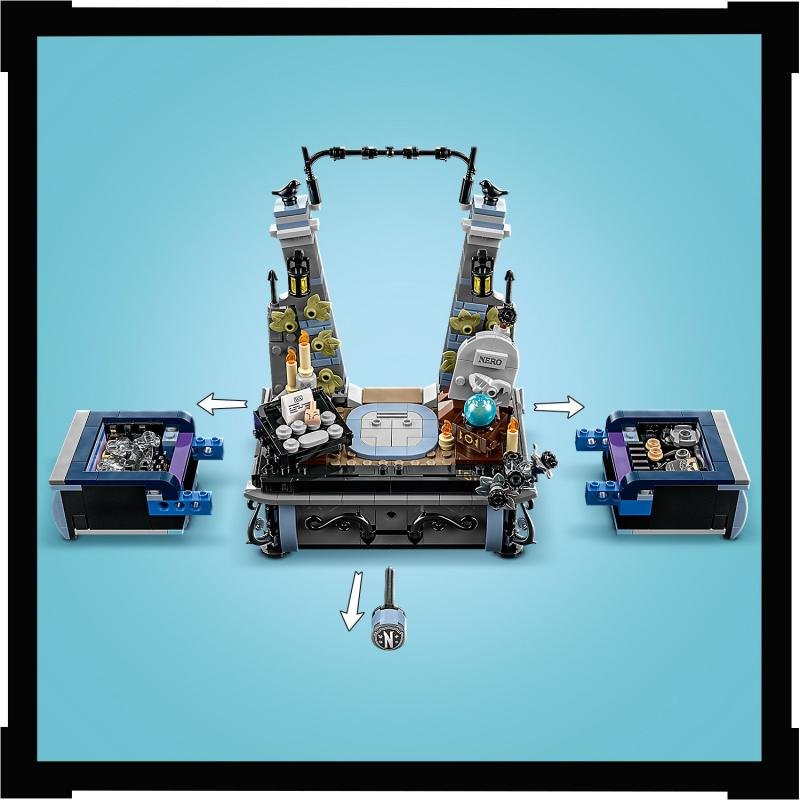 Děti od 10 let se se stavebnicí Figurka: Wednesday Addamsová (76780) mohou těšit na pořádnou dávku záhad a chaosu. Tato dárková stavebnice LEGO® s Wednesday obsahuje sběratelský model s pohyblivou hlavou, rukama a nohama, a navíc 2 obličeje a 2 druhy oblečení, se kterými si malí stavitelé figurku přestaví podle svého gusta. Součástí sady je věrný parťák Věc, stojan s černými jiřinami a 2 skryté prostory, ve kterých uchováte poklady, jako jsou šaty z Havranbálu nebo její uniforma. Nechybí také brána akademie Nevermore a Wednesdayiny doplňky, včetně psacího stroje, Neronova hrobu, křišťálové koule a dalších prvků. Prohlédněte si i další stavebnice s motivem LEGO Wednesday Addamsové (prodávají se samostatně) pro ještě více herních možností. Model navíc představuje skvělý narozeninový dárek pro děti. Digitální verzi návodu na stavění najdete v aplikaci LEGO Builder. Na zadní straně základny podstavce na vystavení najdete samolepku s QR kódem, kterou lze naskenovat pro snadný přístup k digitálnímu návodu na přestavení nebo změně oblečení Wednesday. Aplikace umožňuje dětem přibližovat a otáčet modely ve 3D a spoustu dalšího. Hračka Wednesday Addamsové – Potěšte fanoušky záhad stavebnicí Figurka: Wednesday Addamsová na motivy oblíbené postavy z televizního seriálu, která obsahuje pohyblivý model z kostek, stojan s úložným prostorem a spoustu dalšího Záhadná stavebnice s tajemstvím – Součástí je figurka Wednesday z kostek se 2 obličeji a 2 druhy oblečení, Věc, stojan se 2 tajnými uzamykatelnými zásuvkami a řadu doplňků Hračka akademie Nevermore – Fanoušci televizního seriálu od 10 let si mohou Wednesday postavit v uniformě nebo v šatech z Havranbálu a umístit ji na podstavec Sběratelská stavebnice Wednesday – Sestavitelný, přizpůsobitelný pohyblivý model postavy, který byl navržen pro hraní a vystavování se spoustou známých předmětů z oblíbeného televizního seriálu Přizpůsobitelný dárek – Hledáte dárek pro nadšeného fanouška? Tato propracovaná stavebnice LEGO představuje skvělý tip na narozeninový dárek nebo překvapení pro fanoušky televizního seriálu a zvídavé Wednesday Intuitivní digitální návod na stavění – Aplikace LEGO® Builder obsahuje digitální verzi návodu na stavění, který je součástí stavebnice Podněcujte představivost – Stavebnice LEGO® Wednesday povzbuzují odvážné mladé fanoušky záhad v pátrání po pravdě prostřednictvím kreativního stavění a detailů, které rozšiřují jejich vypravěčské dovednosti a tvořivost Rozměry – Stavebnice se skládá ze 702 dílků a součástí je figurka Wednesday Addamsové na podstavci, která měří přes 33 cm na výšku, 21 cm na šířku a 14 cm do hloubky