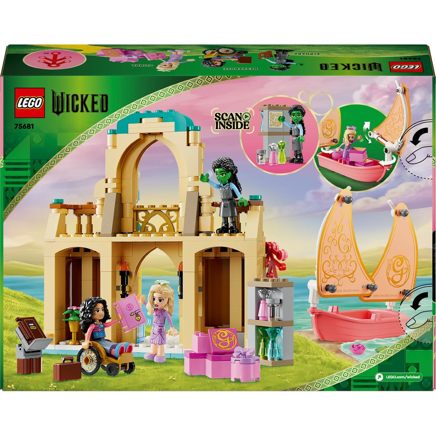 Vydejte se s dětmi od 7 let do země Oz s fantasy stavebnicí Glinda, Elphaba a Nessarose na Shiz univerzitě (75681). Představuje skvělý dárek pro děti, které milují domečky pro panenky, a fanoušky filmu Wicked (Čarodějka). Fanoušci se vydají na dobrodružství ve světě LEGO® Wicked. Glinda připluje na Shiz univerzitu na své plachetnici se sklopnou plachtou. Pyšní se krásným růžovým odstínem, stejně jako ve filmu. Stavebnice představuje skvělý dárek a je inspirovaná filmem Wicked (Čarodějka) a děti si s ní připomenou příběhy o přátelství minipanenek Glindy, Elphaby a Nessarose. Propracovaná dvoupatrová budova obsahuje 2 balkony a místnost na knihy se stojanem na knihy. Děti objeví QR kód a naskenují ho svým zařízením, aby odemkly jedinečný online obsah LEGO Wicked. Stavebnice s miniaturním domečkem pro panenky je plná kreativních doplňků, jako jsou květiny, lektvary a samolepka na Nessarosinin invalidní vozíček a malí milovníci domečků pro panenky si stavebnici přizpůsobí podle svých představ. Kouzelný domeček pro panenky a plachetnice pro děti – Stavebnice LEGO® Wicked Glinda, Elphaba a Nessarose na Shiz univerzitě představuje slavný okamžik z filmu, kdy se dívky poprvé setkají Součástí jsou 3 postavy z filmu – Tato fantasy hračka pro děti od 7 let obsahuje minipanenku Glindy, Elphaby a Nessarose, invalidní vozíček, kufříky, stojan na knihy a knihu kouzel Připomeňte si kouzlo filmu – Stavebnice je plná známých prvků z filmu, včetně Glindiny plachetnice a Elphabina deníku, a nechybí spousta kouzelných herních prvků Herní zážitek – Fanoušci budovu přizpůsobí svým představám pomocí dekorativních prvků, ozdobí Glindiny vlasy doplňky a odhalí další jedinečný obsah LEGO® Wicked naskenováním skrytého QR kódu Dárek pro holky, kluky a fanoušky filmu Wicked (Čarodějka) od 7 let – Tato nápaditá hračka představuje kouzelný dárek pro děti, které milují hraní na postavy, a fanoušky filmu Wicked (Čarodějka) Další fantasy hračky pro děti – Prohlédněte si další stavebnice LEGO® Wicked (prodávají se samostatně) inspirované filmem, které jsou dostupné v aplikaci LEGO Builder Přineste si domů kouzlo filmu – Se stavebnicí LEGO® Wicked děti a fanoušci filmu Wicked znovu prožijí okamžiky přátelství Elphaby a Glindy v zemi Oz Rozměry – Tato stavebnice se skládá z 304 dílků a model univerzity měří přes 15 cm na výšku, 16 cm na šířku a 10 cm do hloubky