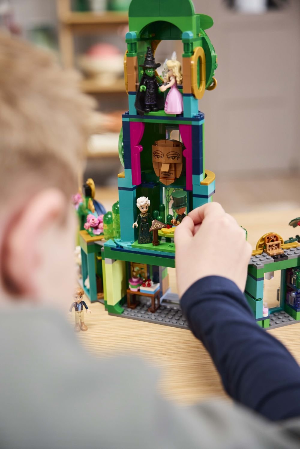 Vydejte se s dětmi od 9 let na kouzelné dobrodružství do země Oz se sběratelskou stavebnicí LEGO® (75684) Vítejte v Emerald City. Malí stavitelé si připomenou scény z filmu Wicked (Čarodějka) , postaví si propracovanou třípatrovou věž a prozkoumají celou řadu funkcí modelu. Součástí této fantastické hračky je 5 minipanenek, se kterými si děti připomenou scény o přátelství z filmu Wicked (Čarodějka). Minipanenky Fiyera, Glindy a Elphaby si projdou obchod s kosmetikou, užijí si zábavu při nakupování dortů nebo si vychutnají kávu od prodejce se stánkem na kole. Další herní inspiraci děti získají naskenováním skrytého QR kódu, díky kterému získají přístup k jedinečnému online obsahu LEGO Wicked. Tato okouzlující stavebnice LEGO poslouží jako úchvatný dárek pro každého fanouška filmu Wicked (Čarodějka). S aplikací LEGO Builder, která dětem umožní přibližovat a otáčet stavebnici ve 3D při stavění tohoto kouzelného výstavního kousku s mtivem Emerald City, bude stavění ještě magičtější. Sběratelská hračka Vítejte v Emerald City – Děti se vydají stavitelské dobrodružství LEGO® a připomenou si s touto třípatrovou věží slavnou scénu ze světa filmu Wicked (Čarodějka)  Fantasy hračka pro děti od 9 let s 5 minipanenkami LEGO® Wicked – Součástí je Glinda a Elphaba, Wizard, Madame Morrible a Fiyero a scéna z Emerald City Děti ve středu kouzel – Prohlédněte si obchody v Emerald City, projedou se v pojízdné kavárně, prozkoumají místnost s mapami v modelu věže a setkají se s Wizardem Spousta známých prvků – Součástí tohoto modelu věže je kniha kouzel Grimmerie, stánek s cukrovými jablky, Wizardův model nafukovacího balónu a jeho obří mluvící hlava z filmu Tip na dárek pro děti a fanoušky filmu Wicked (Čarodějka) od 9 let – Tato stavebnice představuje krásný dárek pro nejlepšího kamaráda a děti, které milují film Wicked (Čarodějka)  a domečky pro panenky Magický stavitelský zážitek – Vykouzlete ještě více filmových kouzel s dalšími kreativními stavebnicemi z řady LEGO® Wicked (prodávají se samostatně), které jsou součástí intuitivní aplikace LEGO Builder Fantasy hračky pro děti – Tato stavebnice Emerald City dětem umožní připojit se k Elphabě a Glindě na jejich dobrodružstvích v zemi Oz a užít si další jedinečné okamžiky se stavebnicí LEGO® Wicked po naskenování skrytého QR kódu Rozměry – Model Vítejte v Emerald City se skládá z 945 dílků a měří přes 39 cm na výšku, 37 cm na šířku a 13 cm do hloubky