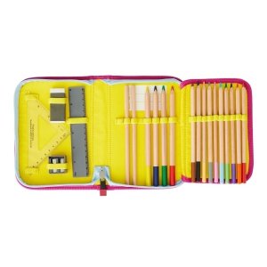 LEGO pouzdro s náplní obsahuje všechny potřebné psací potřeby do školy. Pouzdro je dodáváno s náplní: 2 grafitové tužky, 10 barevných pastelek, 4 široké barevné pastelky, guma na gumování, ořezávátko, rovné a trojúhelníkové pravítko. Pouzdro obsahuje rozvrh hodin v průhledné kapse a všitou vnitřní jmenovku. Je vyrobeno z odolného materiálu bez použití PVC. Popis pouzdra: - jednopatrové pouzdro s výklopným panelem - průhledná kapsička s rozvrhem hodin - štítek na jméno a telefon - 22 poutek pro školní pomůcky Náplň: 2 tužky, 10 pastelek, 4 široké pastelky, guma na gumování, ořezávátko, 2 pravítka. Rozměry: 14 x 20 x 4 cm Hmotnost: 320 g Objem: 0,5 l Materiál: 300D/600D Polyester
